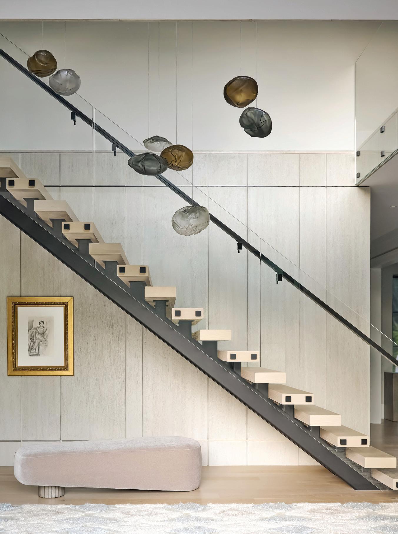 “Just having different artwork in a space drastically changes the look and the feel,” she says. “You could have a caramel suede throw pillow on an ivory sofa to make it more inviting. Maybe heavy fringe. That can add a lot of depth and softness. Or what I love to do is search the globe for decorative smalls that really make an environment, like a beautiful bowl from the South of France that nobody else has, and you put it on your coffee table. Things like that—they really have provenance, and when you walk into a room and sit down, that could be a conversation. You talk about travel or the arts. There’s a lot that goes into every single light fixture. Individual things can be very special.”