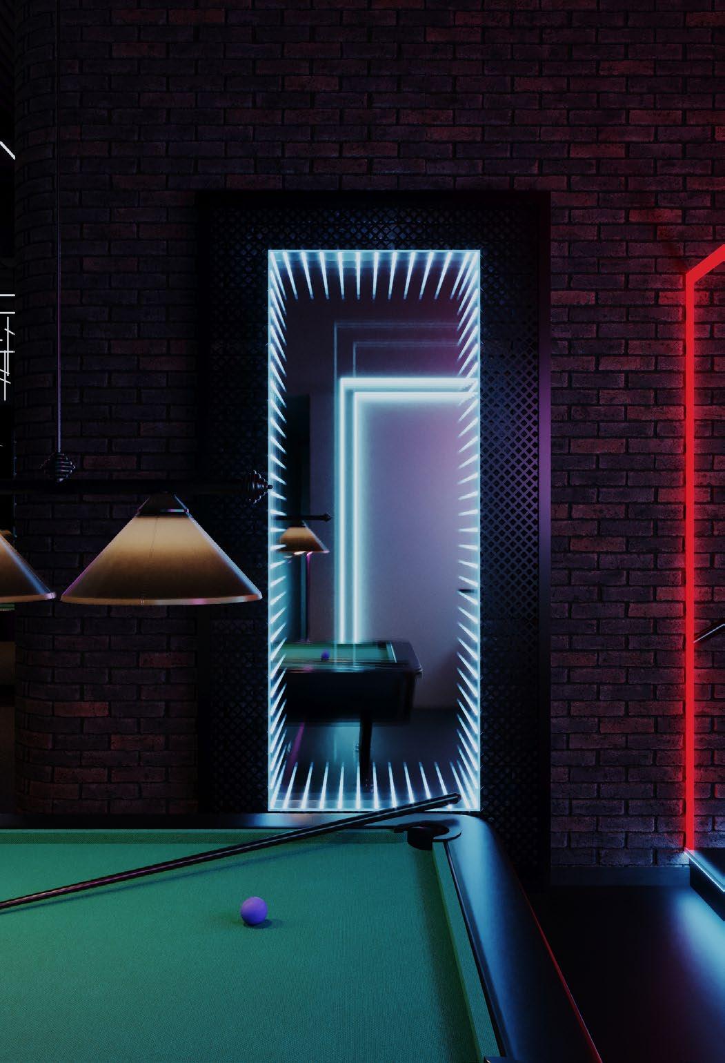 GREY TEXTURE CLADDING STEEL MESH (BLACK COATED POWDER) INFINITY MIRROR LED FRAME LACKER GLASS FINISH (DARK BLACK) LED NEON GREY TEXTURE PAINT BLACK PAINT FINISH SKIRTING