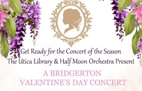 Dearest Gentle Reader, you are cordially invited to attend a Bridgerton Concert at the Utica Public Library on February 13th at 6:30pm, performed by Half Moon Orchestra. Expect candlelight, costumes, and popular melodies performed by Half Moon Orchestra Bridgerton style! uticapubliclibrary.org/calendar