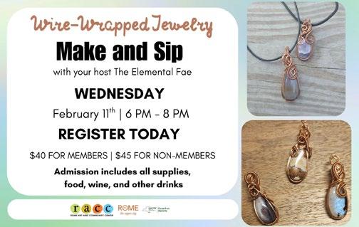The Rome Art & Community Center is hosting The Elemental Fae in making a copper wire-wrapped teardrop pendant while snacking, drinking & socializing in a unique location. Register onlinetickets include all materials, drinks & snacks. https://romeart.org