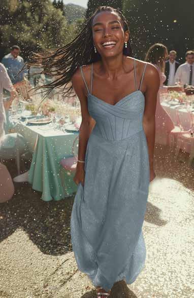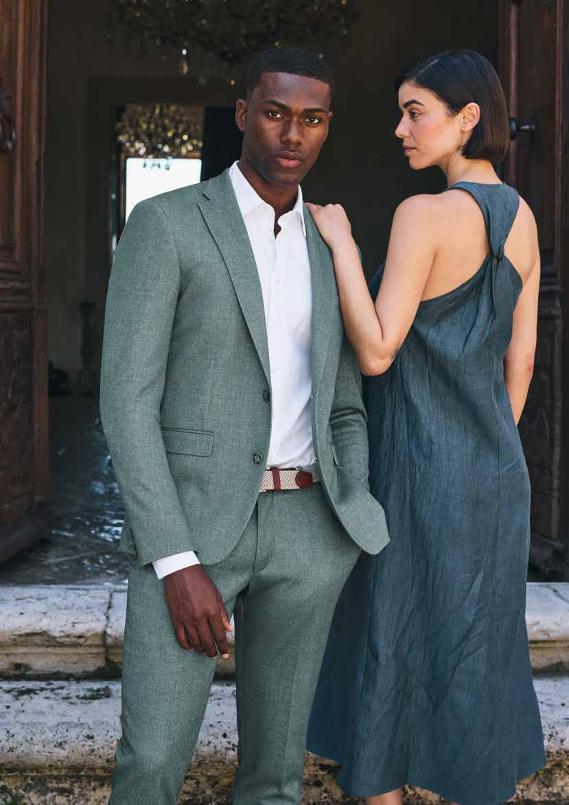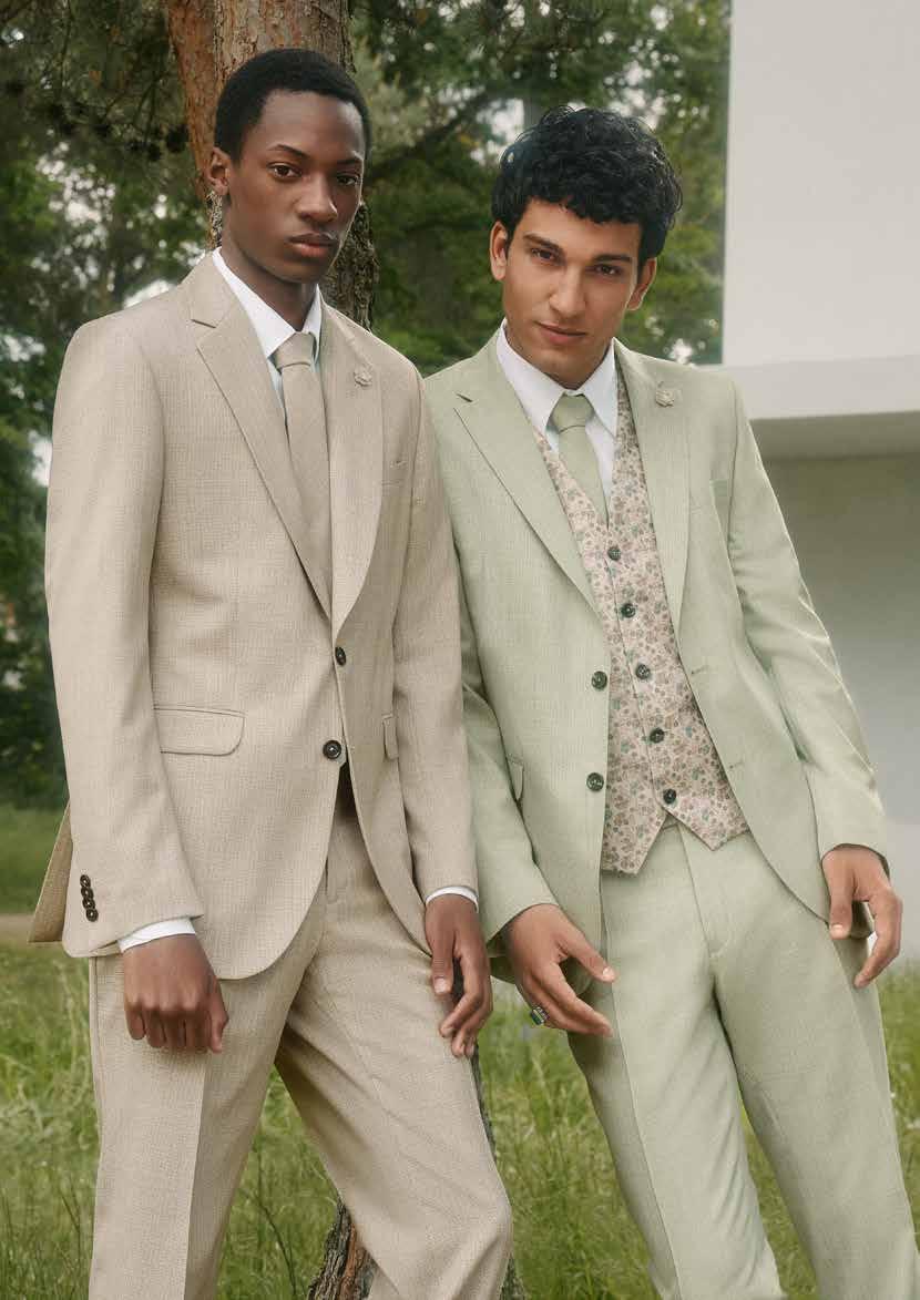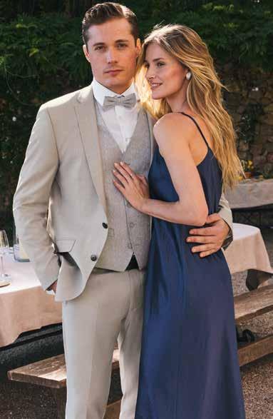 Feiern mit Stil: Natürliche Farben kombinert mit modernen Schnitten verleihen dem Look eine entspannte, aber dennoch festliche Ausstrahlung.