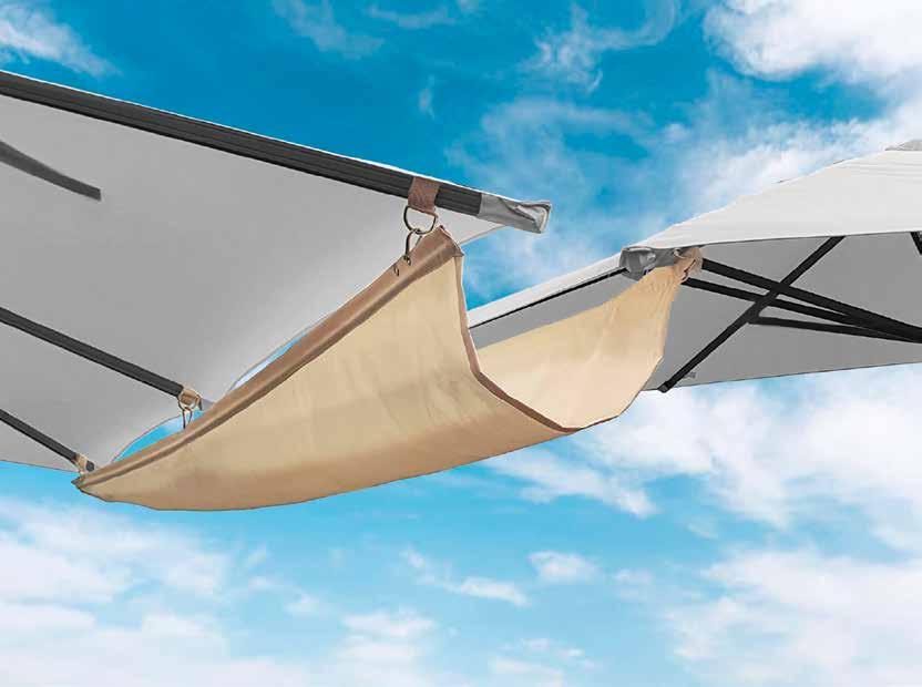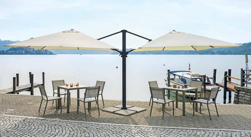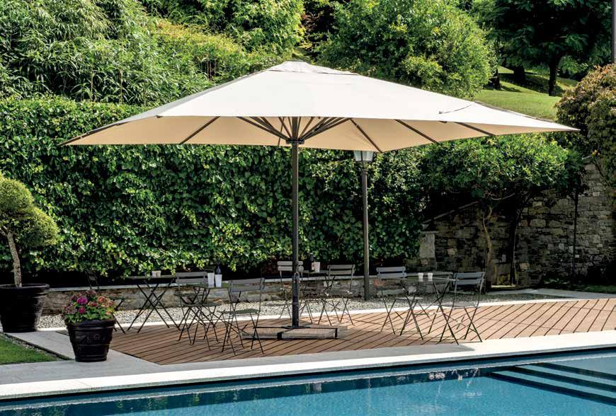 Una vasta gamma di soluzioni di differenti misure, forme e colori compongono questa collezione, adatta a soddisfare le esigenze di tutta la clientela. Sono presenti articoli adatti sia ad uso professionale che ombrelloni pensati per un angolo relax in giardino o in terrazza.
