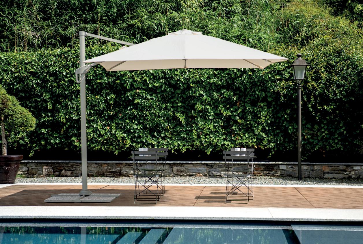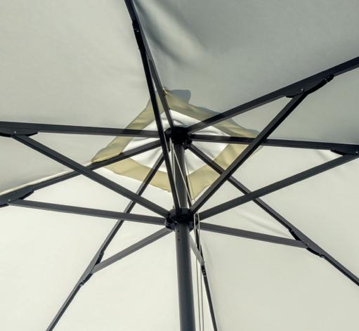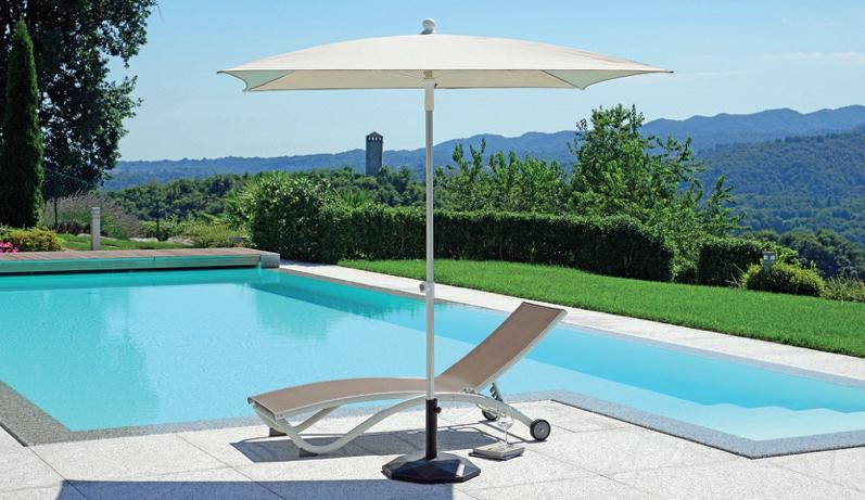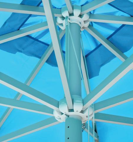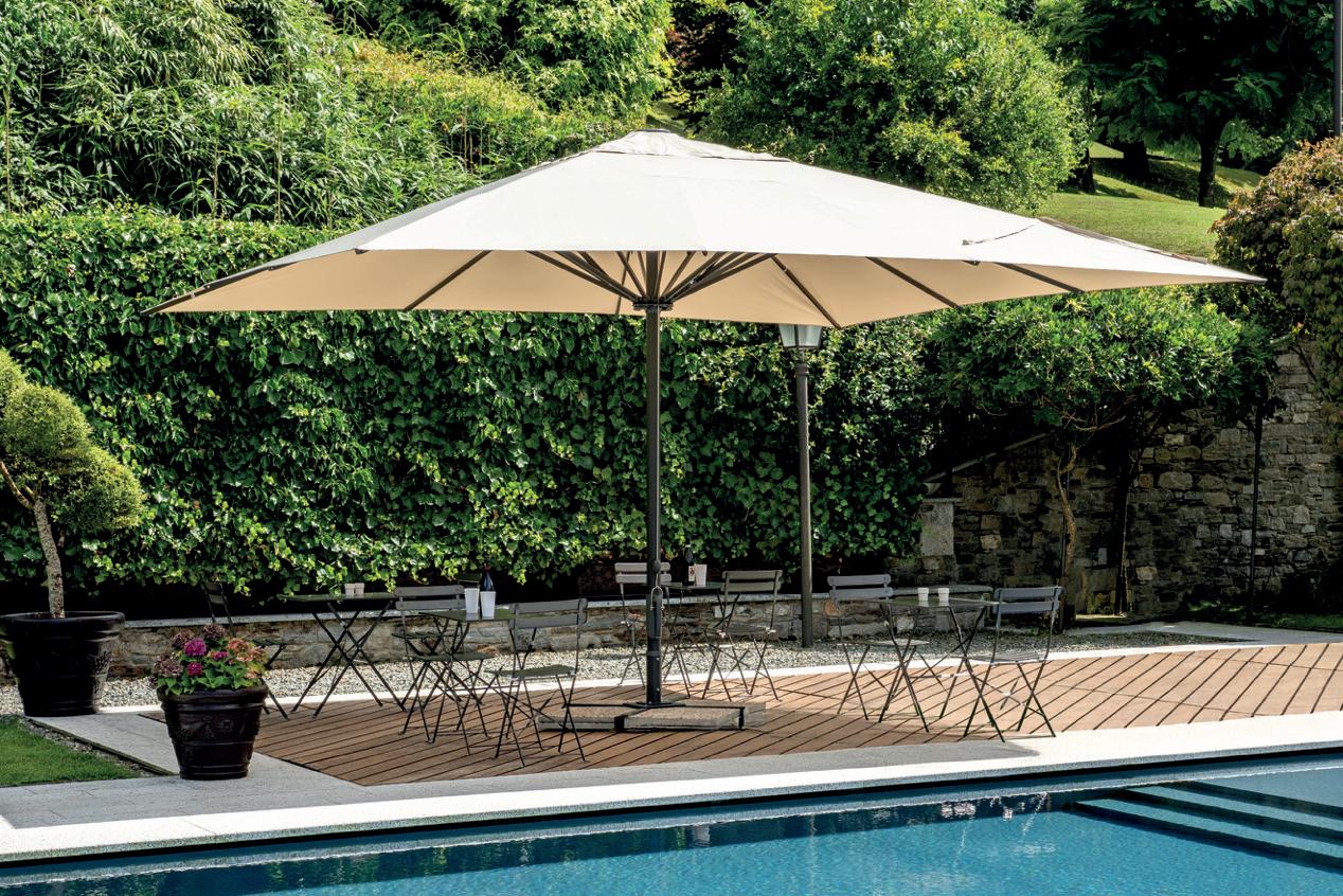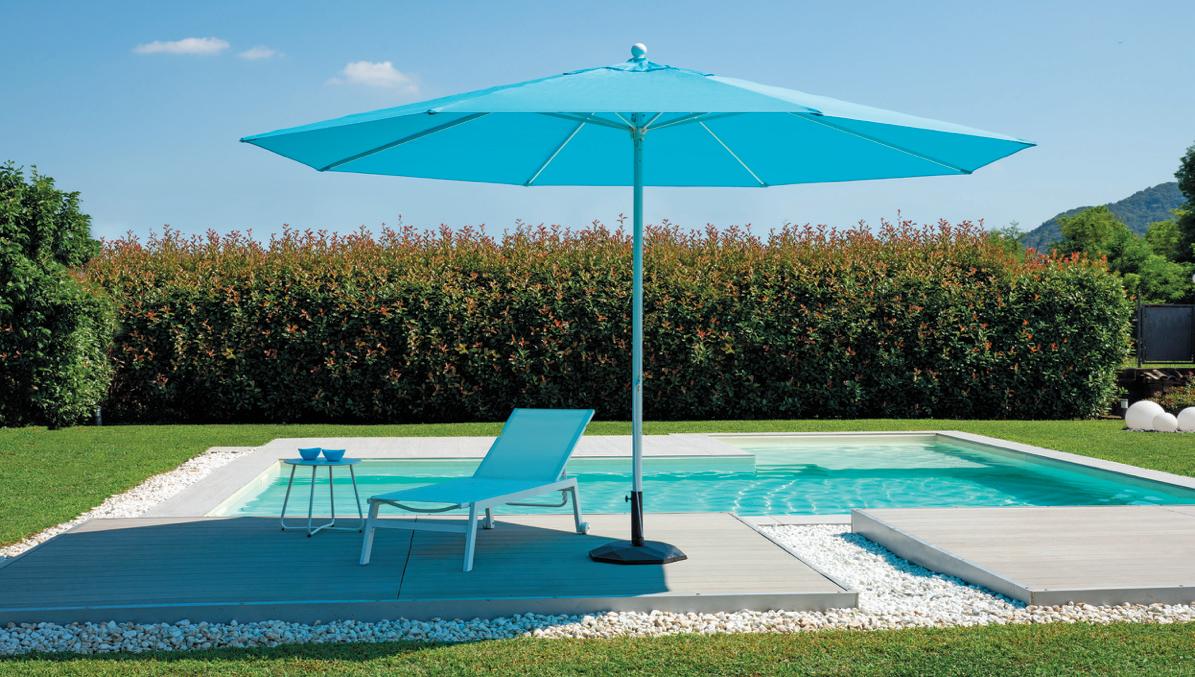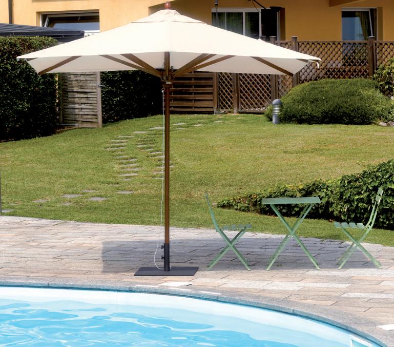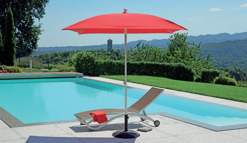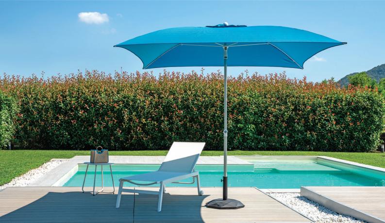 Molteplici proposte di prodotto nazionale, realizzato interamente da chi, da 60 anni, realizza ombrelloni con fusti e tessuti d’eccellenza. Tinte unite sgargianti e attenzione ai dettagli per la collezione di ombrelloni Greenwood.