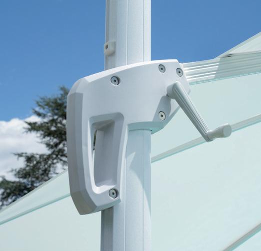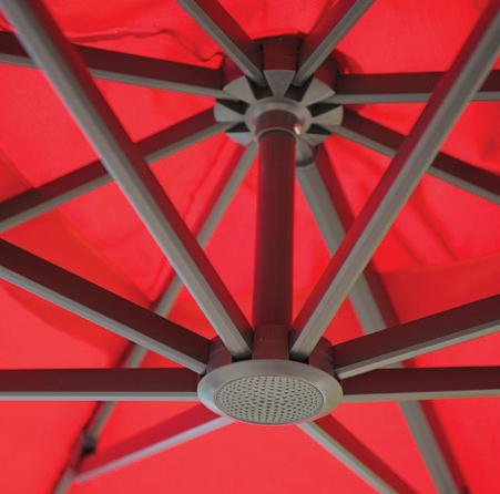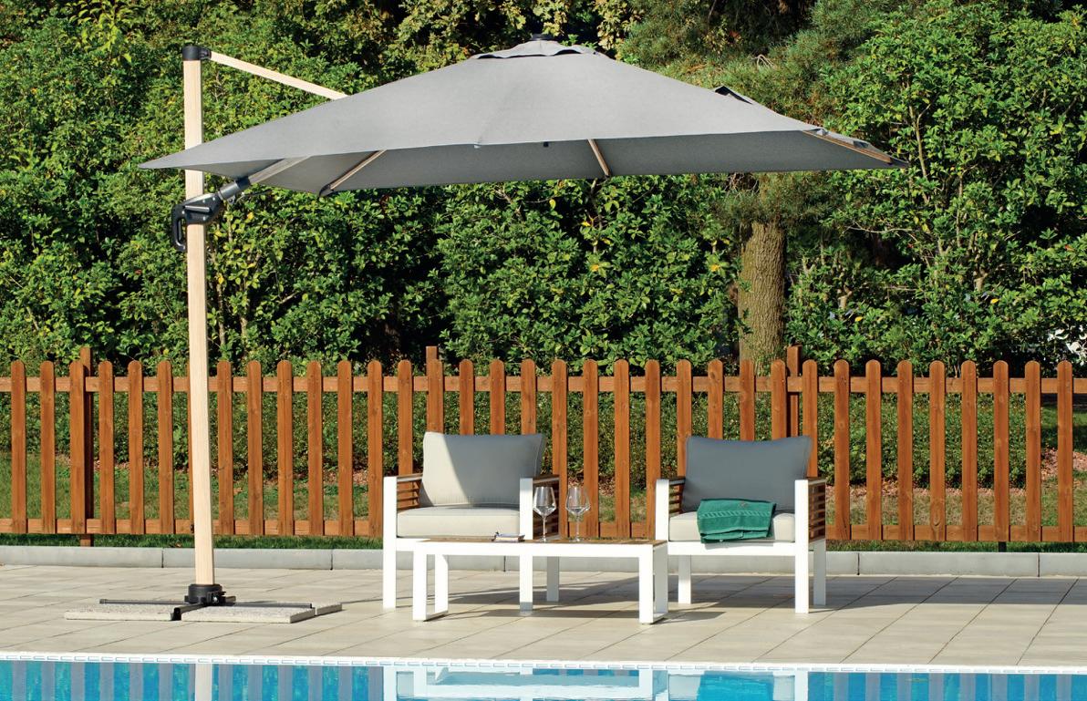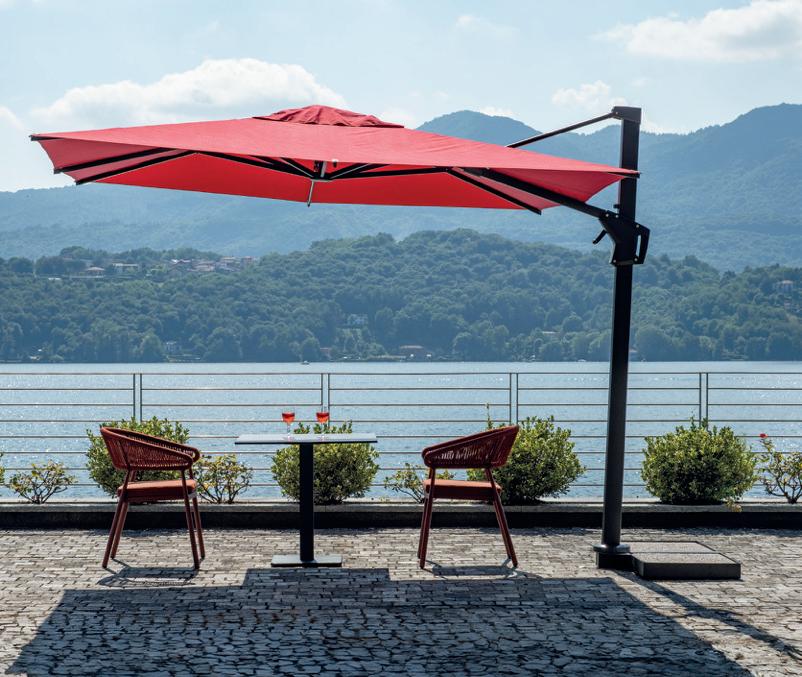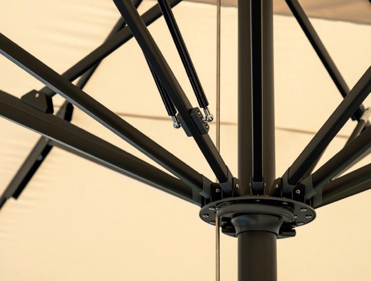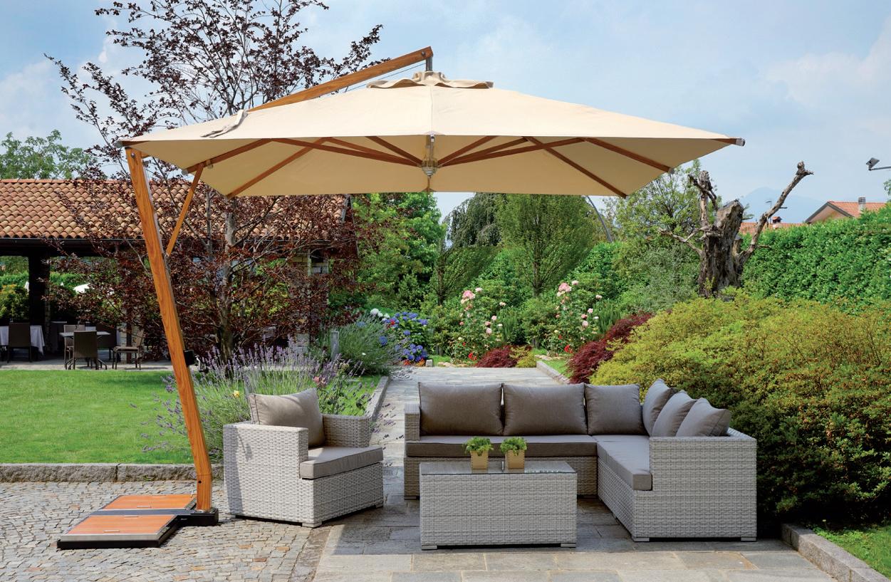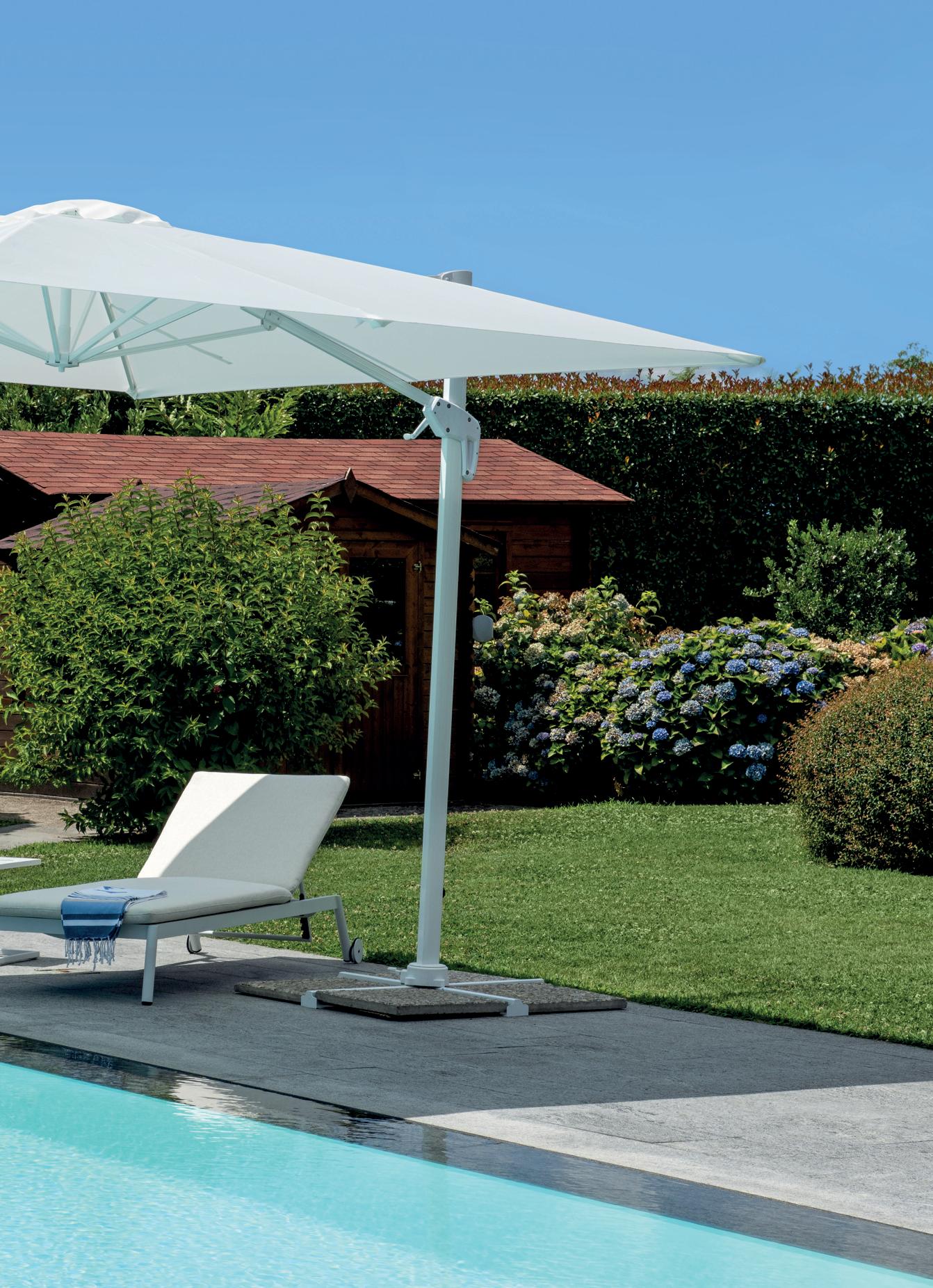 Molteplici proposte di prodotto nazionale, realizzato interamente da chi, da 60 anni, realizza ombrelloni con fusti e tessuti d’eccellenza. Tinte unite sgargianti e attenzione ai dettagli per la collezione di ombrelloni Greenwood.