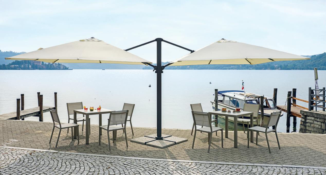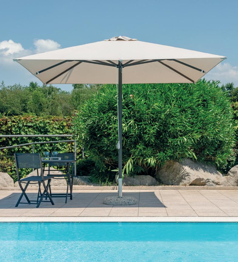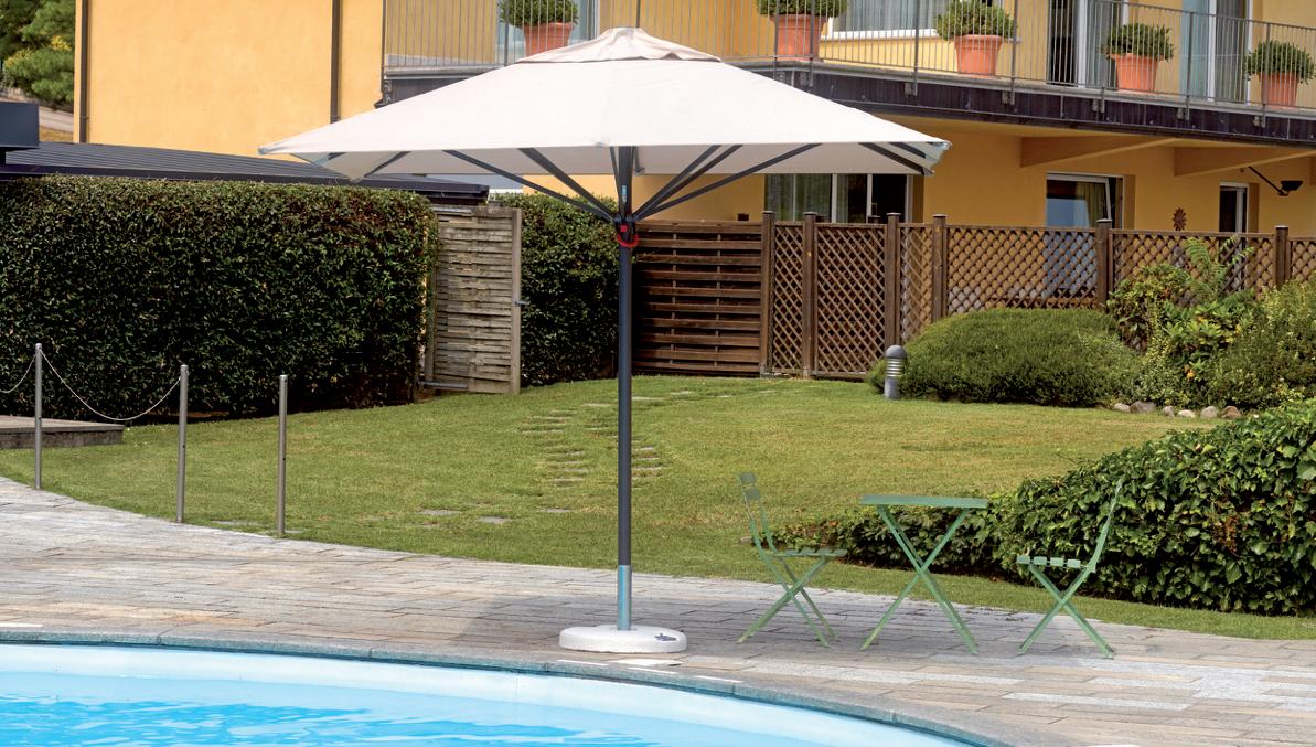 Una vasta gamma di soluzioni di differenti misure, forme e colori compongono questa collezione, adatta a soddisfare le esigenze di tutta la clientela. Sono presenti articoli adatti sia ad uso professionale che ombrelloni pensati per un angolo relax in giardino o in terrazza.