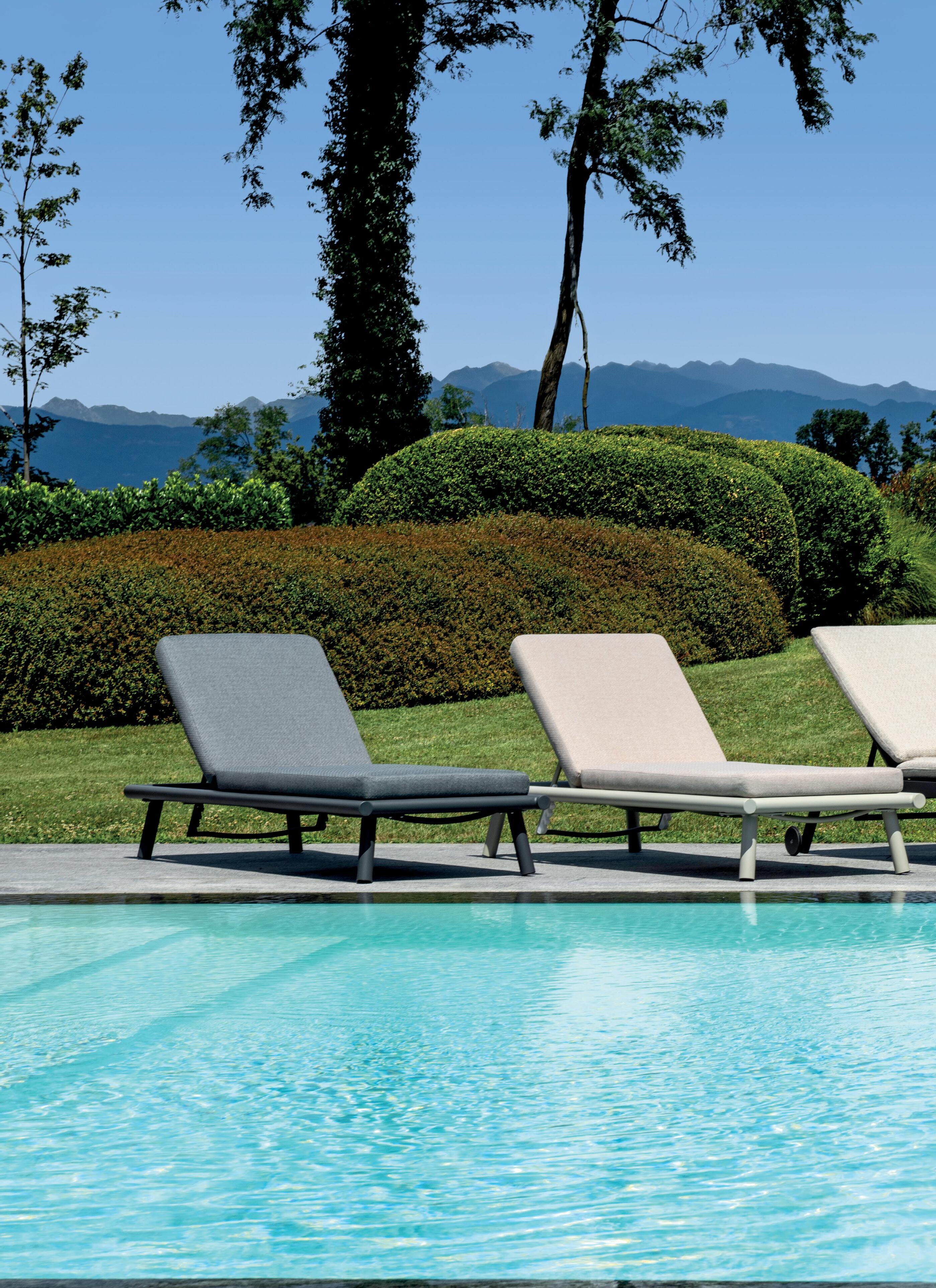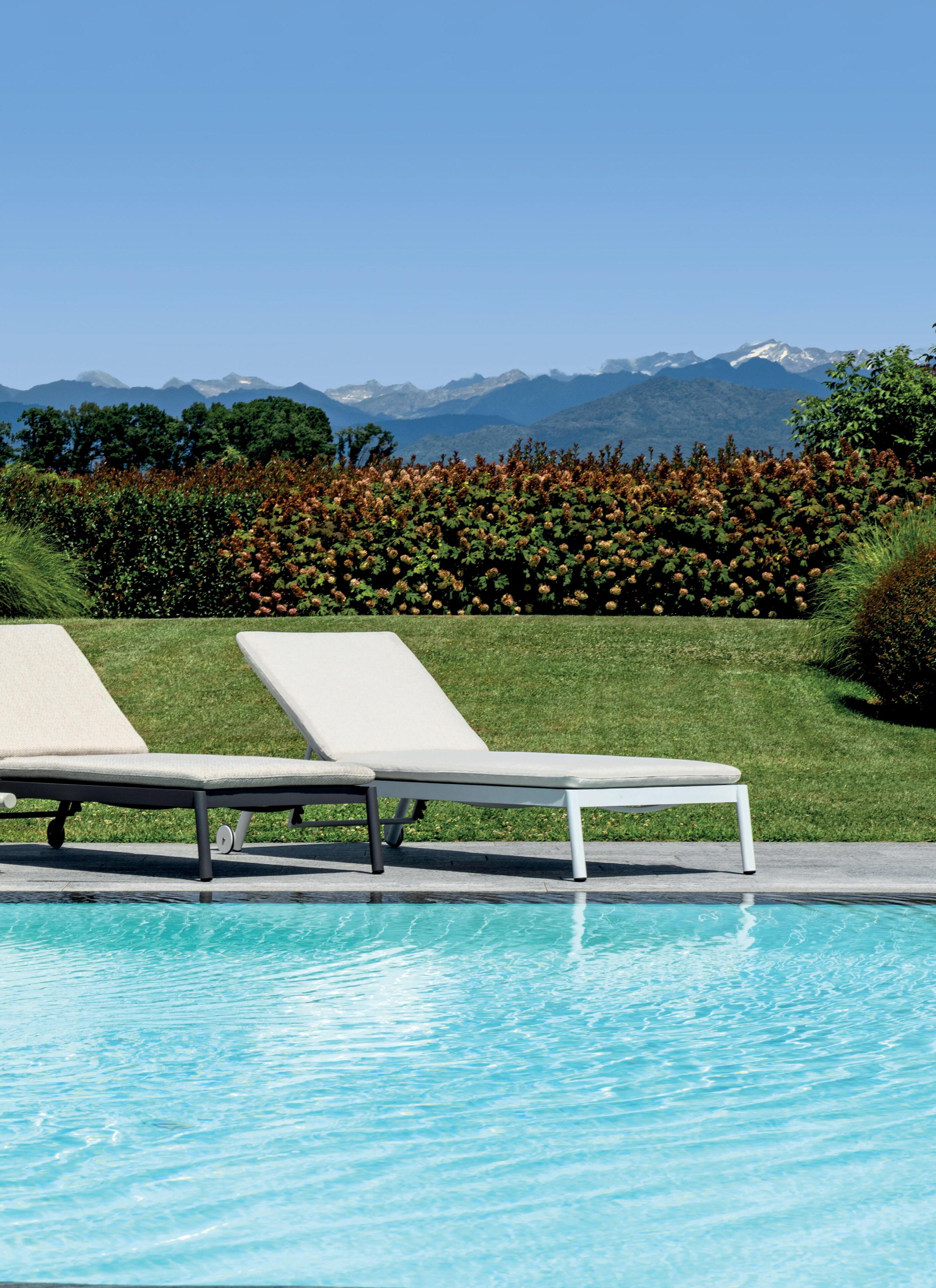 Schienali regolabili, strutture leggere e dettagli funzionali per un’esperienza di relax totale.