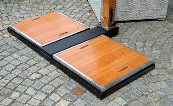 I piani in HPL Greenwood sono dotati di fresature che li rendono particolarmente versatili: sono infatti adattabili ai diversi basamenti della gamma.