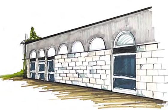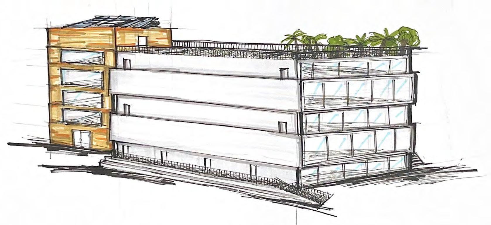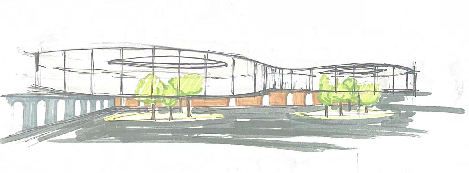 Handdrawn sketches of exterior of school building