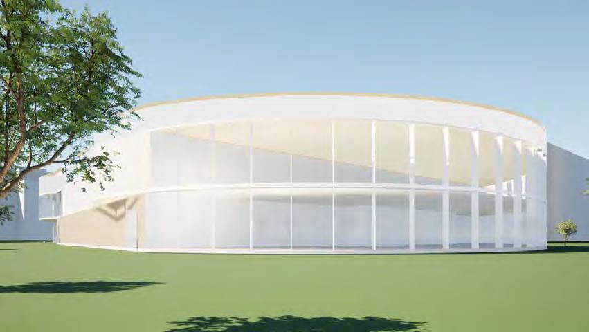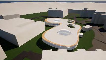 RENDERS OF THE CREATIVER CLUSTER, AN ART GALLERY WITH A ROOFTOP GARDEN AND BASEMENT CAFE THAT CONNECTS TO THE RIVERSIDE PARK