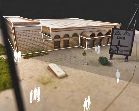 The Frederick Gibbard library is the main building that will be retrofitted to make my neurodivergent school. have done various amounts of research on the background of the library, including sketches, plans, elevations and models of the existing library. The library is designed as two distinct blocks, each performing a different function. The main building, which is the library proper, is a large rectangular, single-storey structure, accommodating the lending reference and other large rooms. Adjoining it is a two storey wing containing miscellaneous accommodation such as reading, lecture and staff rooms. Externally the building consists of load bearing walls and a reconstructed stone-faced concrete piers alternating with timber windows (which are currently being replaced), which are carried to the ground so that the library’s activities can be seen from the outside and instills a sense of inclusion with the othe residents. Above this wall and window system is a deep frieze faced with light grey mosaic and pierced by semi-circular clerestory windows, which form an unbroken rhythm round the whole building and open inwards as a formof ventilation especially during summer. Though now there is air conditioning on the roof On the entrance front the semi-circular windows are projected forward in the form of barrel vaults over the metal and glass entrance lobby. The shelves were made using West African mahogany. On the south side of the building, there is an art mural that has been done by Nuneaton’s younger population.