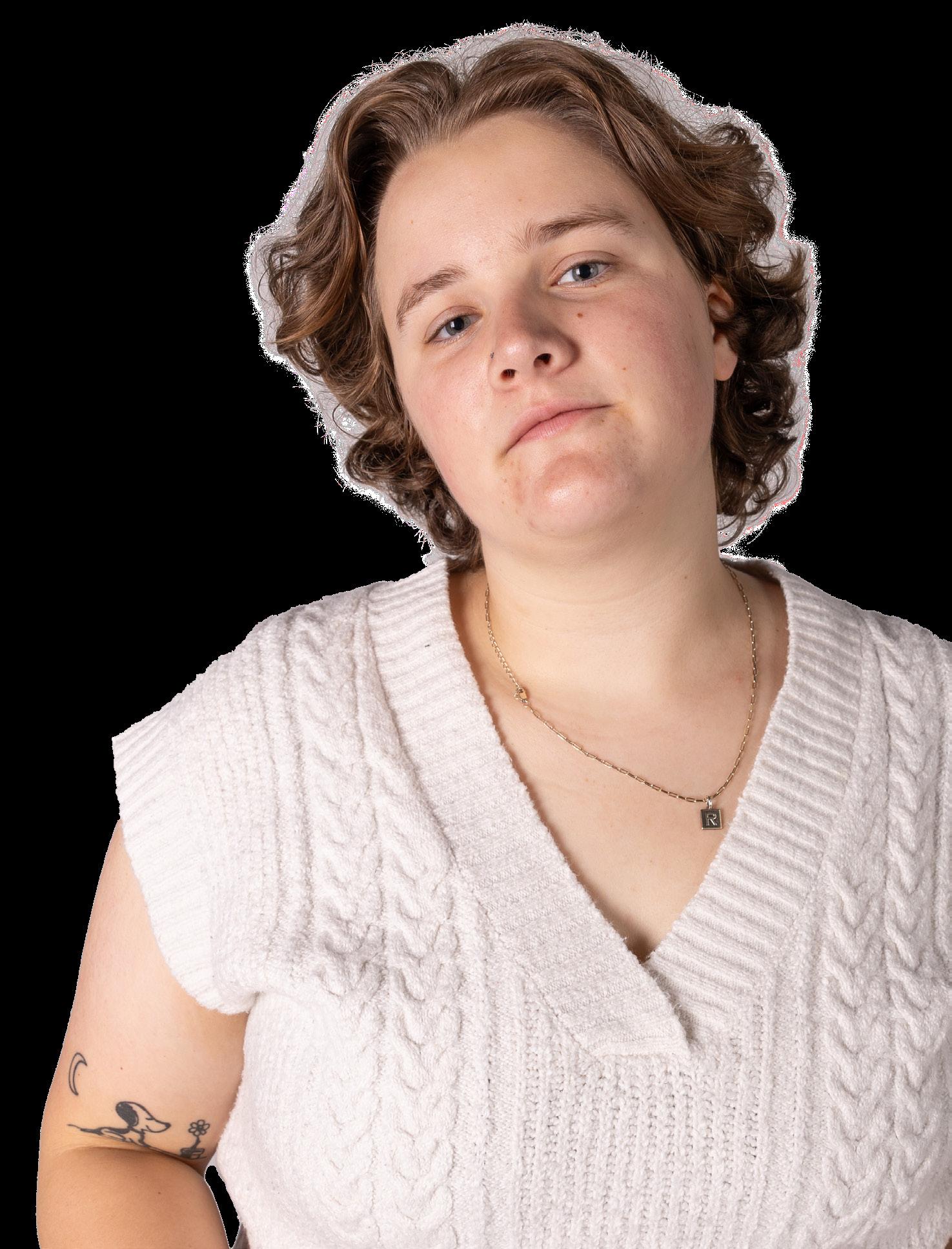 comfortable experimenting with my style, and wearing clothes that I have found make me more confident with the body I have. I enjoy teetering on the line between masculinity and femininity and embracing both sides. It’s a way of expression for me and I’ve grown to find comfort in that.