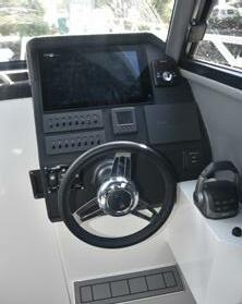 If you are a bit of a petrol head and like the feel and sounds of gears crunching and drives locking into place, then you will not like the Volvo Penta DPI drive. The DPI drive features a hydraulic clutch that ensures silent and smooth shifting, as well as slipping at low engine speeds. The hydraulic clutch, together with electric steering gives an improved joystick docking function. The DPI driveline comes with a Dynamic Positioning System, which automatically maintains a boat’s heading and position, even during strong currents or windy conditions – ideal when preparing for docking or fishing over a canyon. If you prefer outboards then anything bigger than twin V6 225s is ideal, with the wide beam well capable of taking the twin engines. Rex also suggests that a single Mercury V12 600 Verado or a Yamaha XTO 425 V8 would be great power options.