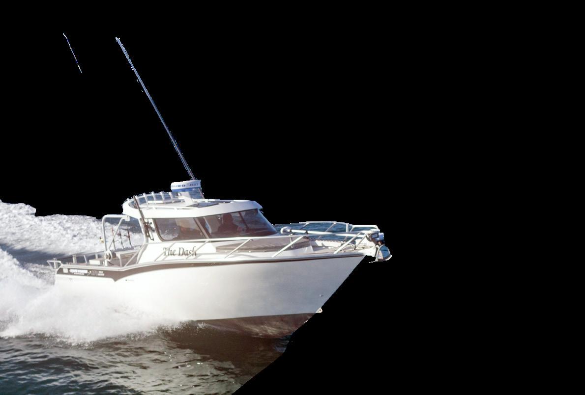 “There is no cooker so I use a bait board mounted gas cooker and with the hot, fresh water outdoor shower, internal toilet, plus a big freezer we had everything we needed“, added Greg. When it comes to fishing The Dash provides all the fishy bits that make it such a dedicated fishing/diving platform. Being a sterndrive powered boat, there is a full width boarding platform with a safety cage all around. This adds great security when fishing in a sloppy sea. There are two drop down ladders that form part of the railing and easily accessed tuna tubes are conveniently placed on either side. If you decide on the outboard option then there are still a pair of platforms either side of the engines and optional cages available. Being one of the highersided (900mm) White Pointers, there is enough transom height to allow