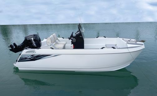Thew V5500 CC is 5.76m overall, with a beam of 2.30m, and a trailerable weight of around 1970 kgs. The first V5500 CC is powered by a Suzuki 150.