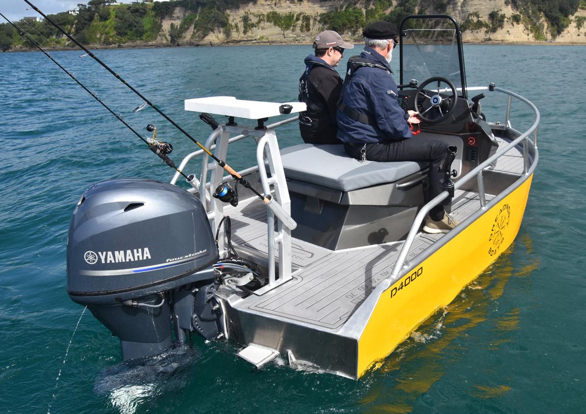 into your garage at home for safe keeping. The US Coast Guard defines a Personal Water Craft (PWC), amongst other criteria, as a jet-drive boat less than 4m long. While the D4000 is not a jet drive, sporting instead a Yamaha 60hp outboard on our test day. It is a compromise (PWC vs small boat) with less hp, more on board fuel and a more economical range. A jet unit can be fitted if requested.