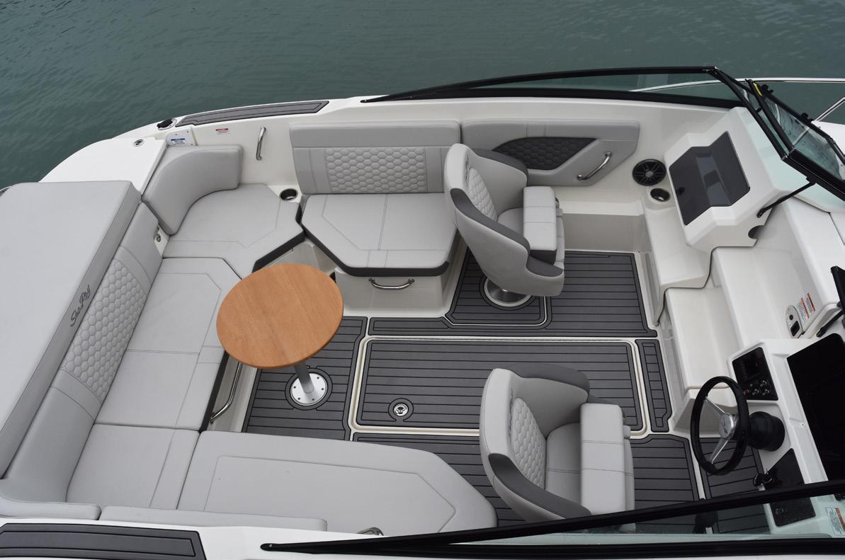 The eye-catching special 30th Anniversary wrap from Brave Design will be complemented on board with attractive brushed mocha SeaDek panels with faux teak lines. Comfortable to stand on, they also protect the cockpit floor, side decks and the platform.