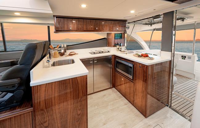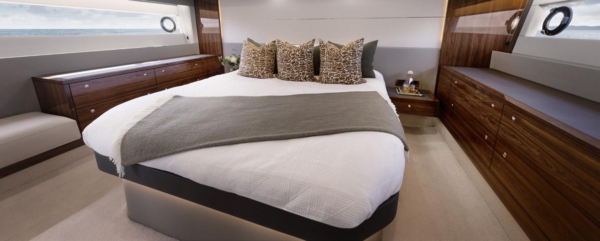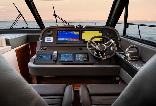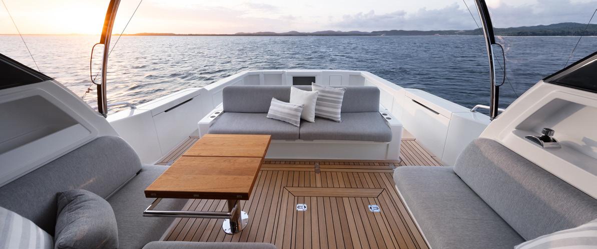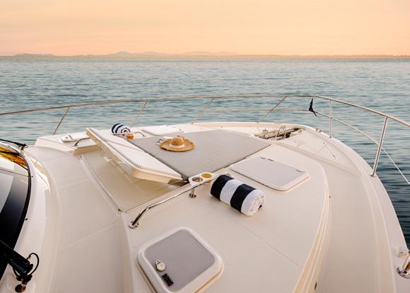 Awide, open cockpit designed for water sports action. Three entertaining and dining options. An aft gourmet galley and spacious saloon. The accommodation deck offers three staterooms and two large ensuite bathrooms. Stretch out and relax on the foredeck sunpad; or the daybed on the alfresco deck; or perhaps the flybridge daybed will be your favourite. Pamper your family and friends on board Riviera’s new ultra-luxury 46 Sports Motor Yacht. And discover easy-to-use technology that makes boating with Riviera more enjoyable; for a weekend escape or a long-range adventure. Discover more at RivieraAustralia.com