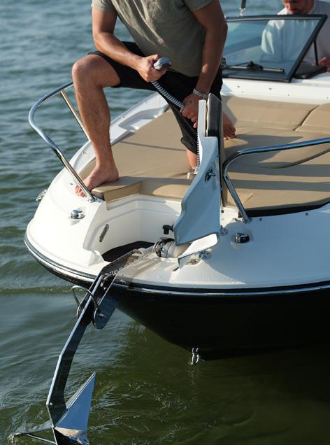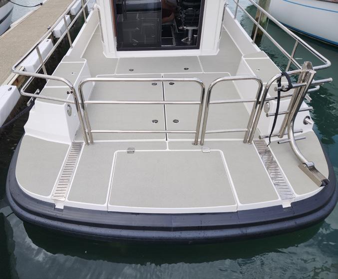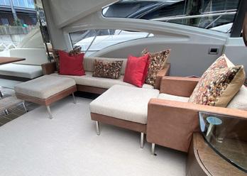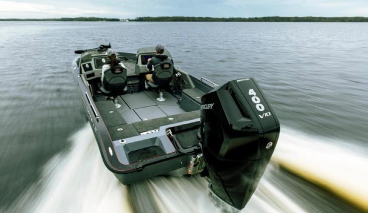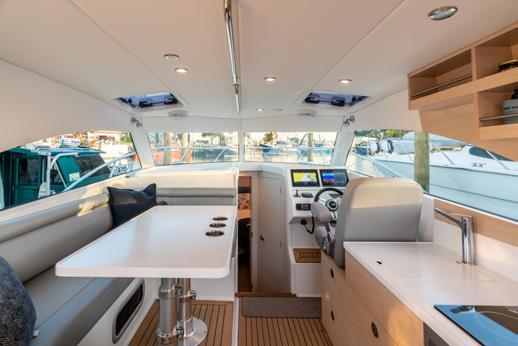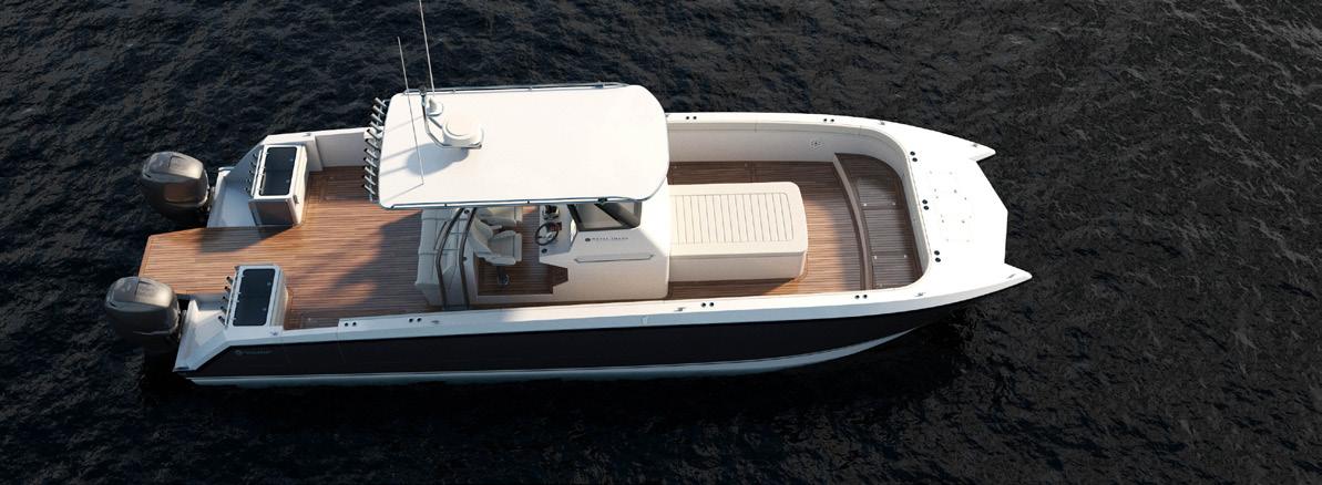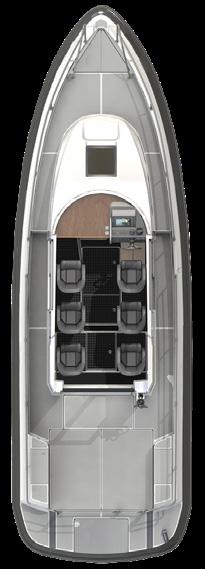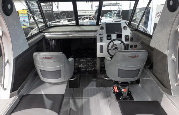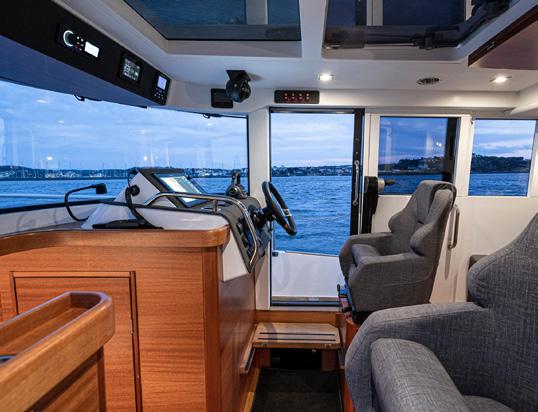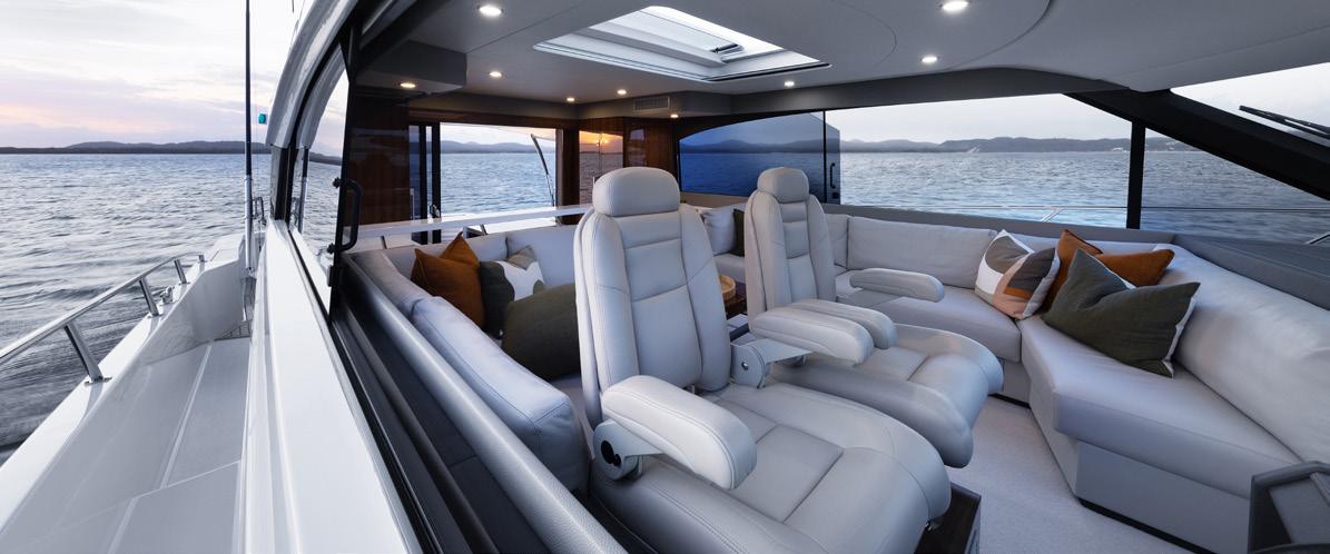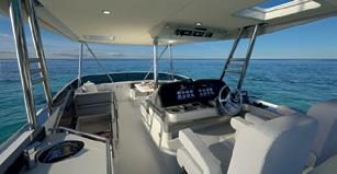 Featuring a Mercury 250 V8, Minn Kota Ulterra, Zipwake trim tabs and Seadek flooring, comfort at sea has been carefully considered. Inside, the FC 700HTA boasts great visibility, overnight bunks, a wellappointed helm, leading to the bespoke design of the king & queen seats. The Anura Amphibious motor was integrated into the queen seat, giving maximum floor space towards the stern of the boat.