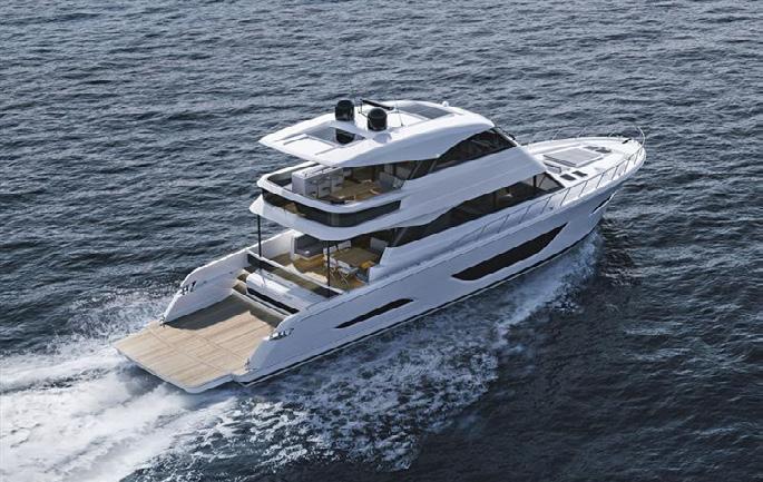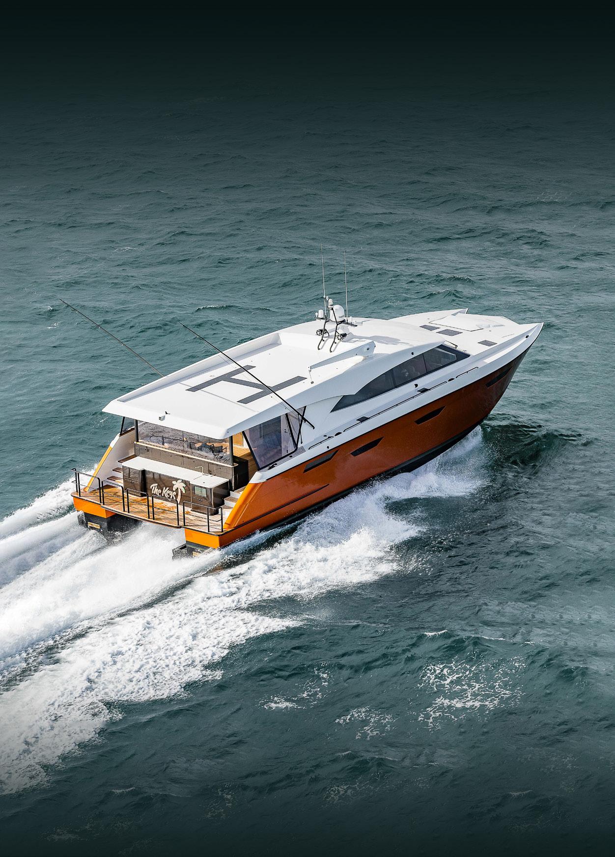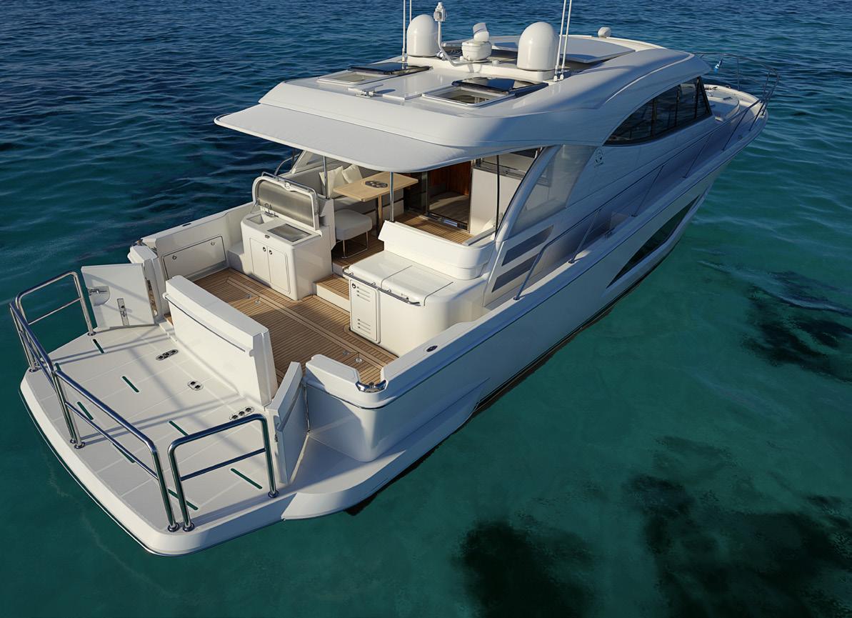 The all new M60 flybridge motor yacht combines a stunningly balanced exterior profile, with an immensity of cockpit deck, and adventure deck space with the ability to cater to a vast range of entertaining, relaxation, or adventuring activities. Australian built, its powerful exterior form and reimagined entertainment areas reset the international standard for cruising flybridge motor yachts. maritimo.com.au