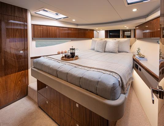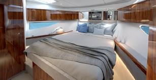 Increased use of wood-finish laminates adds even more class to the bathroom and bedroom spaces. Subtle changes to the saloon are tailor-made to its owner’s specific requirements.