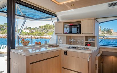 economy via a Volvo D6-440 sterndrive with efficient lithium batteries supplying the house systems, including an induction cooktop.