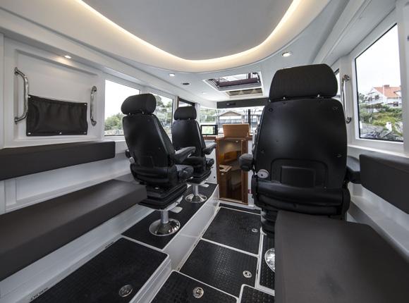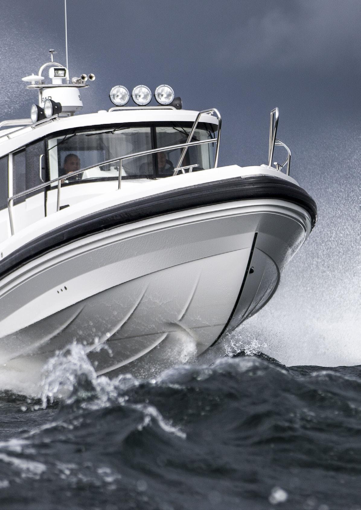 The 36 offers more space in the saloon, slightly more headroom than its hugely popular smaller sibling. The extra length allows for a larger fuel tank, more range and an even more impressive fishing-oriented cockpit. At cruising speed, (20 and 26 knots), the single Volvo’s fuel consumption is typically between 2.3 and 2.5 L per nm. DICKEYBOATS.COM