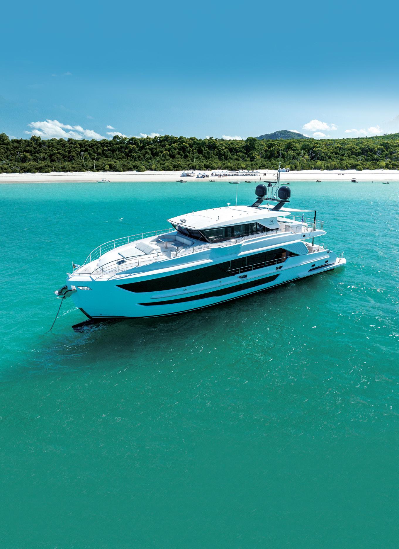 Vivere, meaning ‘To Live’ is spacious and wellappointed, and is ideal for entertaining guests, or extended weekends away with family and friends. Vivere is fitted with a clever electro-hydraulic bathing platform which slides down into the water, that allows for easy access to the jet tender and all water sports.
