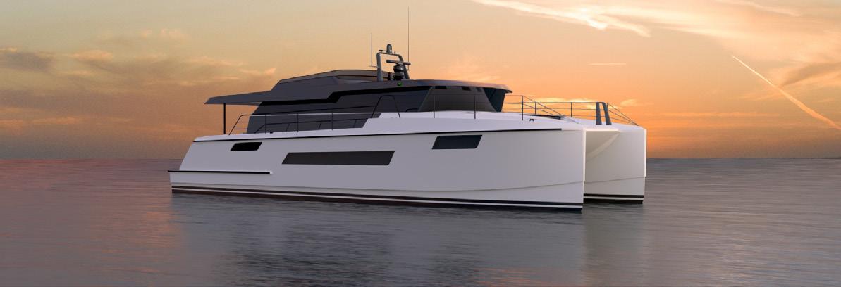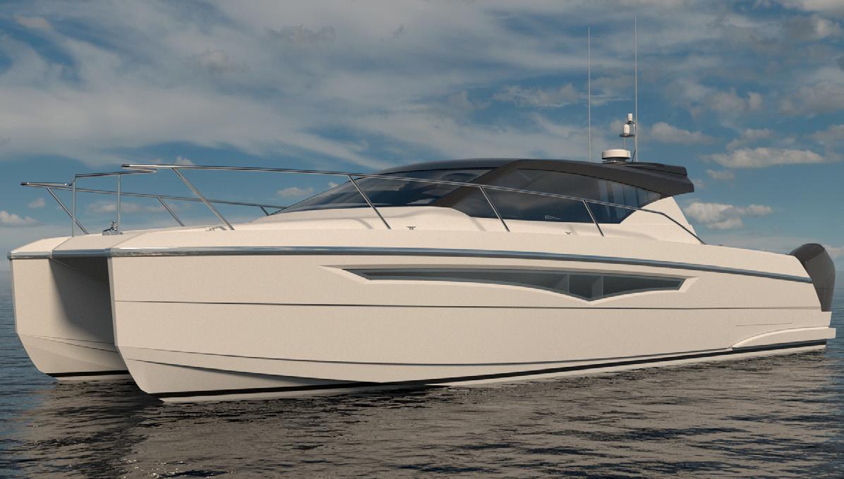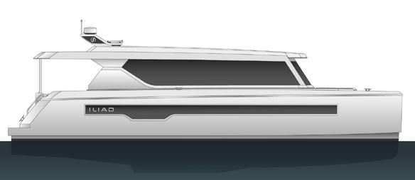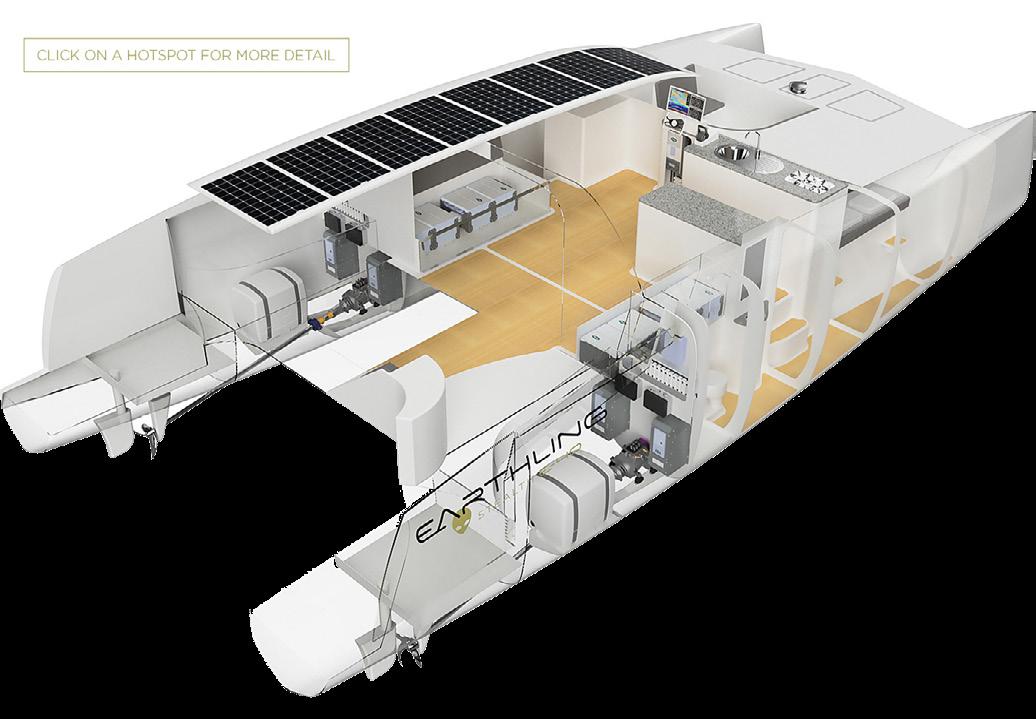 The Earthling E-40 is a production boat, featuring an open bow lounge a large saloon and cockpit and twin cabins in the hulls. However the secret of the Earthling E-40 is its hybrid-electric propulsion system, which is made up of off-the-shelf products.