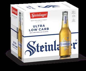 Steinlager Ultra Low Carb lager is a perfectly balanced, easy drinking beer with an exceptionally crisp and refreshing finish. Made with no additives and preservatives, it’s 99% carb free with just 88 calories. Available 12x 330ml bottles or 6x 330ml cans. Available in leading liquor stores and supermarkets