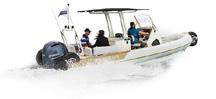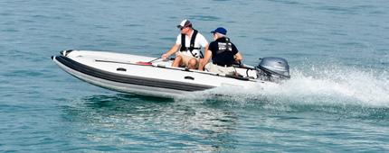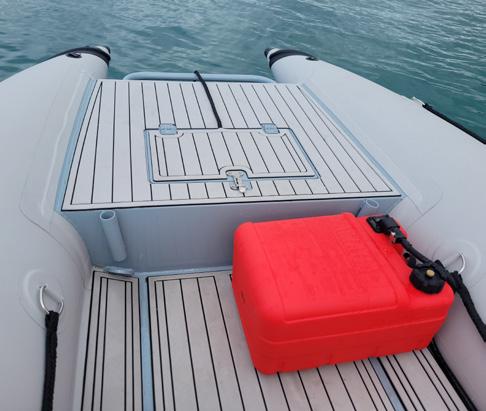 The upright console with a tall, tinted windscreen and grab rails accommodates an 18-centimetre (7”) Simrad MPS chart plotter. There is a wide bow boarding step with roller and cleat for easy anchoring and while at anchor, lots of room to hang out in the wide comfortable bow seating area. The bow area can be converted easily to a lounging sun deck and in the stern, there is another seating area with folding table and cup holders for lunch. For watersports there is an optional removable ski pole or towing arch and a huge and flat rear transom area with telescopic boarding ladder. All deck surfaces feature comfortable, uniquely patterned EVA which won’t get hot and is so soft on the feet. There are four dry storage compartments including an extra deep rear seat area, and all include hydraulic pistons to hold up lids for easy stowing. Rated for 12 persons and 115hp, and incorporating a built-in fuel system, the New Sport 560 has everything you need for a great day on the water. Due to its nimble size the SP560 is incredibly easy to tow making this model perfect for those who wish to take their boat with them on road trips to explore further afield. In essence, one of the most versatile medium sized RIBs in its class.