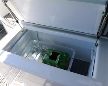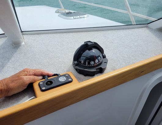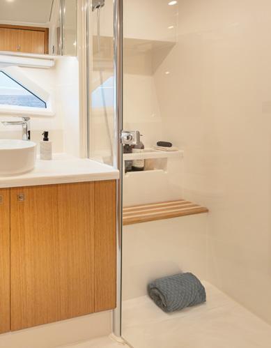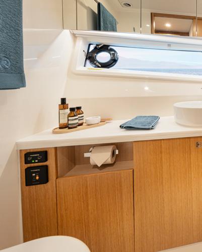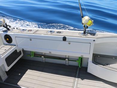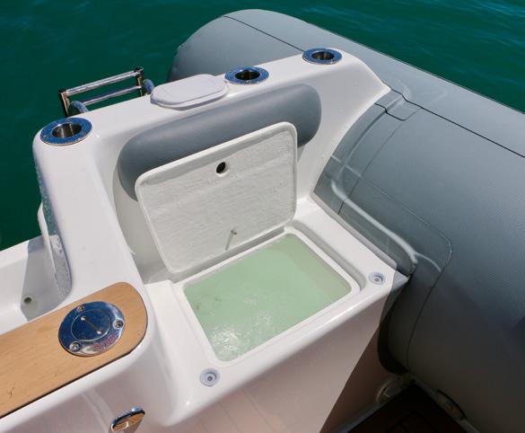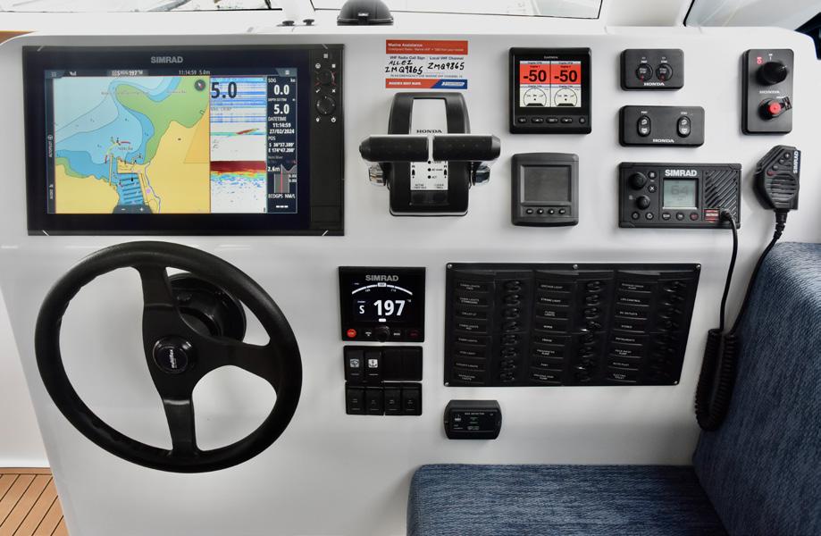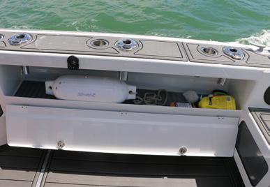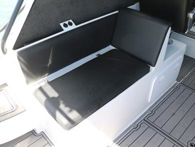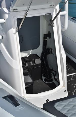 the forefront of the helm station for a porta-potty unit, and so now that will be added to the options sheet (see image). I suspect it will fast become a standard item. But if the lack of a toilet on this test boat was the only exception, what made me think ‘loaded’? Although my list is fairly long, by referring to the spec sheet at the end of the article, you will find that it covers most features. One that isn’t mentioned here, really belongs under the “Clever” heading, but here’s a hint: fire prevention.