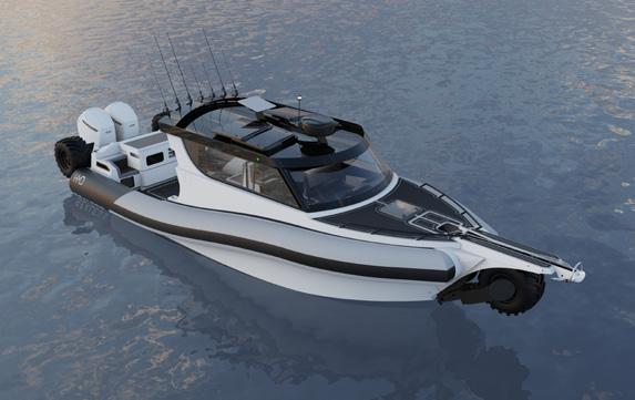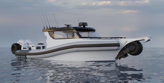Sealegs CEO David McKee Wright said “This, the latest 12RC build further defines a new standard of freedom, luxury, comfort … and performance in an amphibious craft. The size of the platform enables customers the freedom to use their Sealegs in nearly all-weather conditions in style and comfort’’. Further adding to the comfort factor are dual electric sunroofs and an electrically operated divider providing even more space between the cabin and cockpit. The 12RC is available in several layout options including a galley, up to 4 berths and a bathroom. The amphibious enablement system is Sealegs’ proven System100 kit based on existing Sealegs patented technology. It is the result of a three-year development project to upscale and commercialise the amphibious capability for much larger professional craft.