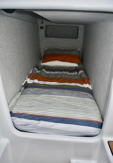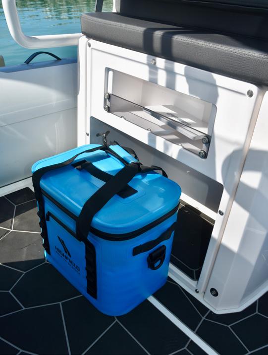 LOADED: There isn’t much missing on this craft. However, for me the most obvious, for a family day boat, was the lack of a toilet. I’ve harked on this a few times in past reviews of other smaller boats, but sorry; if you want to convince mom (never mind the kids) that they are going to be out on the water all day and the only option is ‘bucket and chuck it’ you’re going to be pushing the proverbial (pun intended) uphill. To Jonathan’s credit, when I mentioned this, he immediately engaged me in a conversation as to how this amenity could be supplied. The solution, as it turned out, was dead simple. There is ample space in