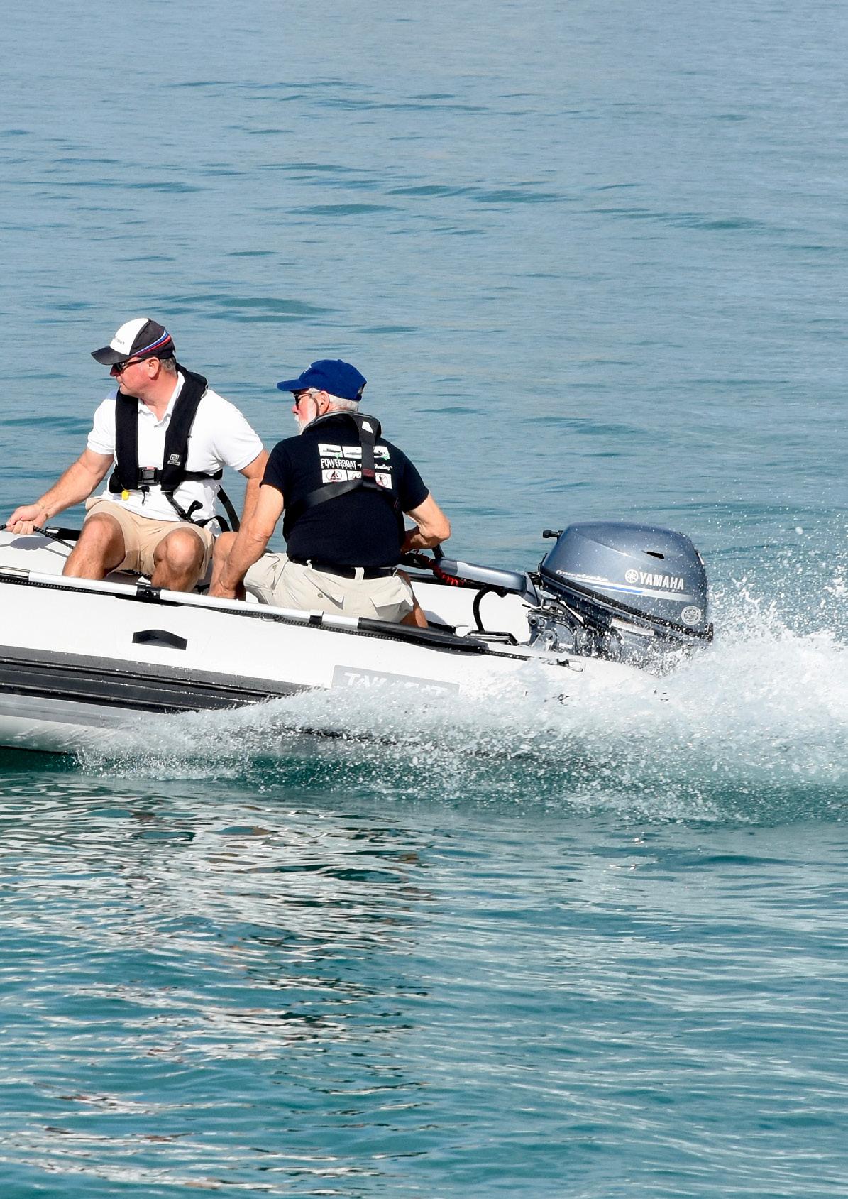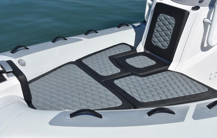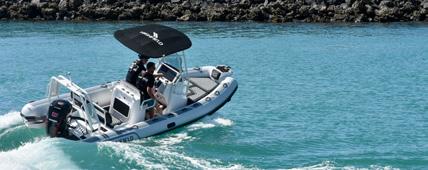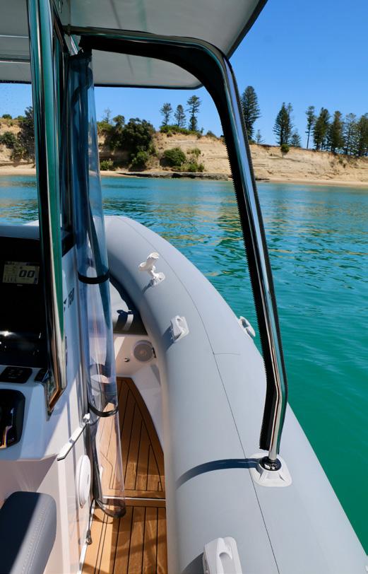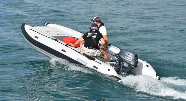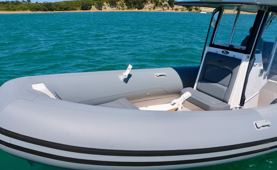 times on both RIB’s and standard inflatable craft of all sizes, one comes to expect a certain standard of good performance from RIBs, especially in the 3 to 9 metre range. The SP560 not only met this standard, but in my opinion, especially considering that it is touted as a ‘family boat’, exceeded it. During the time on board, putting this craft through its paces, at the back of my mind was safety. You hope that any boat you are on is ‘safe’, but particularly so on a family boat. With dad driving, mom alongside and the kids securely seated on the aft bench, if I were dad, would I feel confident putting the SP560 through the same extreme manoeuvres as we did on test day? Absolutely! Careening off the wake generated by a large launch that had powered up after leaving the marina, I tried extremely hard to make this RIB lose control, but to no avail. Under full power, helm hard over and the boat heeling dramatically, there was only the barest hint of the stern losing its grip on the water and, in truth, this was most likely because this manoeuvre was so extreme, I had created prop cavitation in the air infused wave top. No water, no grip! But within a millisecond, as soon as the prop on the Mercury 115 hp outboard found solid water again, the SP560 carried