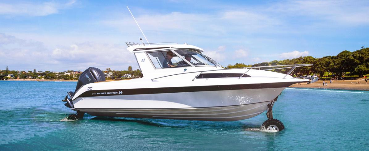 The release of the Overlander configuration expands Haines Hunter’s flagship 725 range, and sees the new model combining Haines Hunter’s award winning 21° deep V hull, and the New Zealand designed and manufactured Anura amphibious system - the Overlander is the ultimate adventure machine. Capable of over 44 knots with a 350hp four stroke outboard, the Overlander has a supremely comfortable, quiet, and dry ride, as well as all of the amenities onboard for a perfect day on the water.