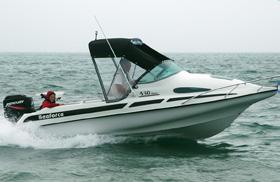 Summing up, the SP560 sport is a perfect family boat for day use or for your next exploration adventure. The heavy duty 24-degree deadrise alloy hull combined with the 115hp Mercury outboard and built-in under deck 105 litre (23 gallon) fuel tank, provides a smooth ride to your closest beach or gets you home safe when conditions get rough. In rough conditions there is more than one driving position due to the flip up standing bolster seat. Additionally, other little details make a big difference: an alcove in the seat designed especially for your cool bag combined with the flip down table behind the seat lets you enjoy a picnic without taking up valuable space.