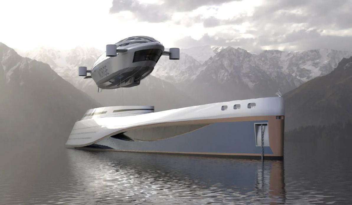 “The Colossea mega-yacht is an itinerant floating docking station for the detachable airship.”