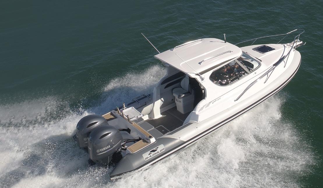 The new Strata 750 RIB is an all-new Gen 2 console designed to perform. While retaining the Smuggler’s proven 27-degree deep vee hull delivering incredible rough water performance it also boasts a Yamaha F250hp four stroke outboard and is easily capable of 50 knots. With upgraded seating and a re-designed Targa top and stainless structure, it also has the addition of new removable side clears to provide extra protection from the elements as well as seating at the helm with two Captain style seats, lift up seat bolsters and foldable armrests. In addition, you will find a toilet located under the helm console and an onboard refrigerator under the helm seat.