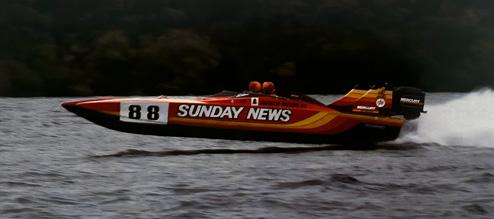 all the time – looking for a competitive edge. The next couple of boats I designed were smaller again, but they were running the same engines, the Detroit Diesels. Then it was onto another new boat, new engines, the Lamborghinis and it had to be smaller. It was effectively a wing flying!” Recalled Bill.