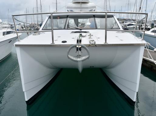 Clean and functional bow area with bow roller, navigation lights, 'pop-up' anchor/ mooring cleat, padded seat and grab handles.