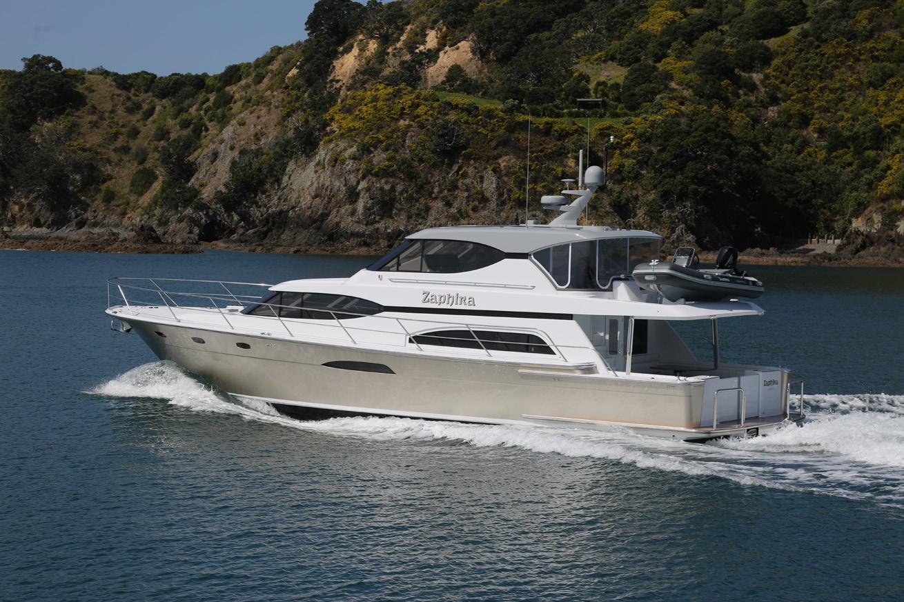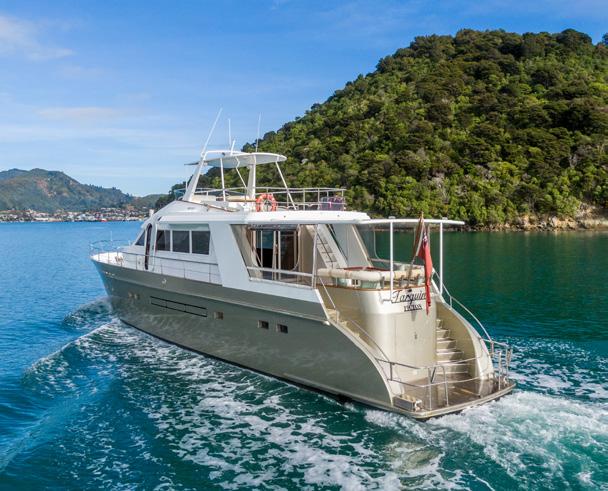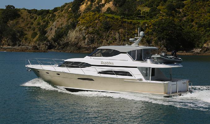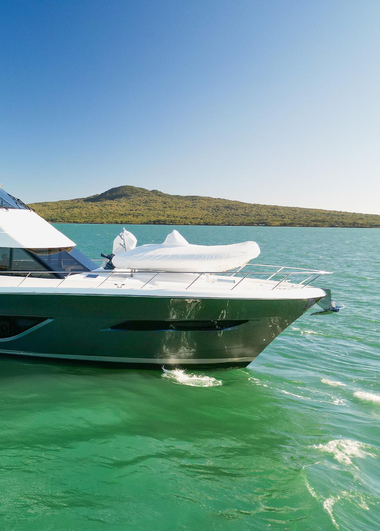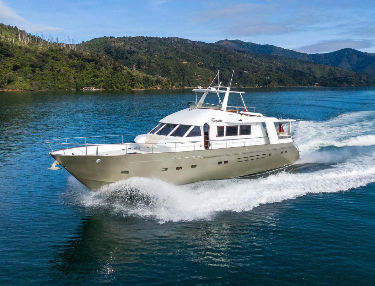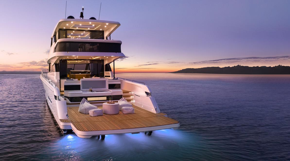 Auckland-custom builder, Lloyd Stephenson Boatbuilders, will present its new launch, Zaphira. This 18 metre is striking in a metallic paint which shines gold as the light changes and highlights the design elements put into this vessel. An expansive pilothouse provides a second entertainment area alongside the helm station, allowing guests to make use of comfortable sofas as they watch the views unfolding outside the three-panelstacking sliding doors to exterior seating on the tender deck. Other new releases at the show include trailer boat debuts, the premier of motoryachts straight from Italy, and a wide range of large luxury motoryachts; both New Zealand-built and imported. The dates of the 2024 show which runs from