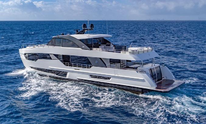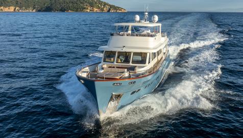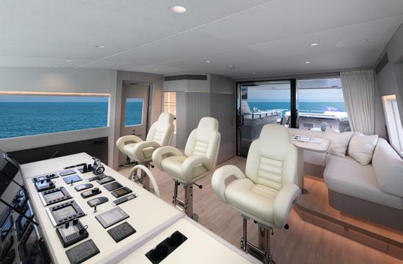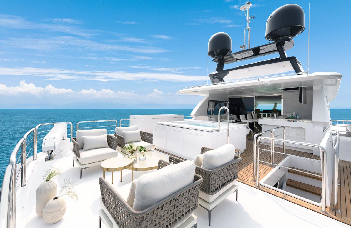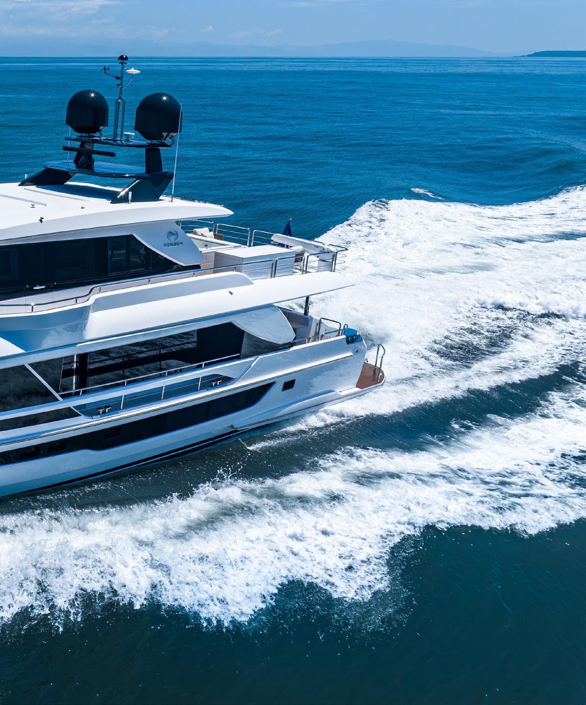 The new Horizon FD80 Skydeck is a highvolume fast displacement motor yacht (hence the FD in the title) and balances style and space with superyacht amenities. She is a beautifully balanced pedigree of fine furnishings and top end finishings combined with some refreshing simple non-complicated workspaces for the serious mariner – the true passage maker of a motor vessel.