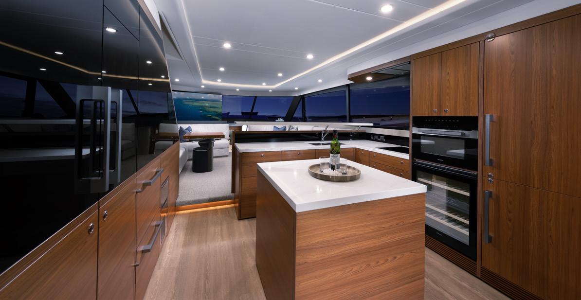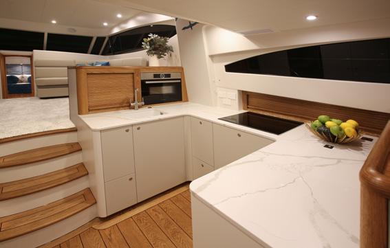 point for navigating the vessel while also accompanying guests onboard. The fusion of functionality and luxury in the galley ensures that preparing meals becomes an experience to savour, even on the high seas.
