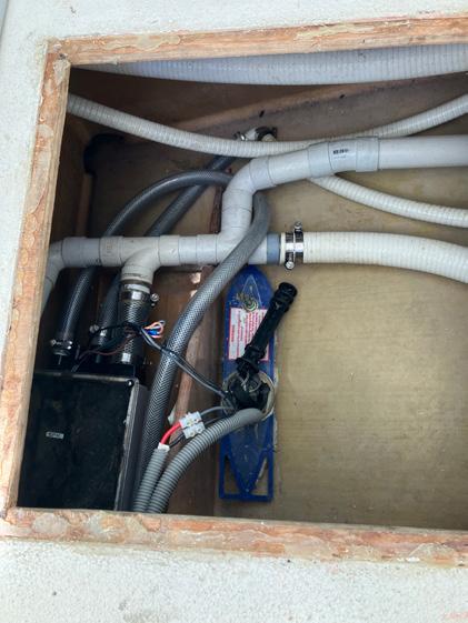 The saloon and galley areas are filled, it seems, with secrets. Wall panels open up every few steps with just a simple touch. One forward on the starboard side reveals a massive crawl space which contains a lot of the electronics, most sparkies used to crawling around tiny switchboard cabinets would consider this a relative castle. Also hidden behind the panelling is a spacious day head, tucked away in the portside aft area of the