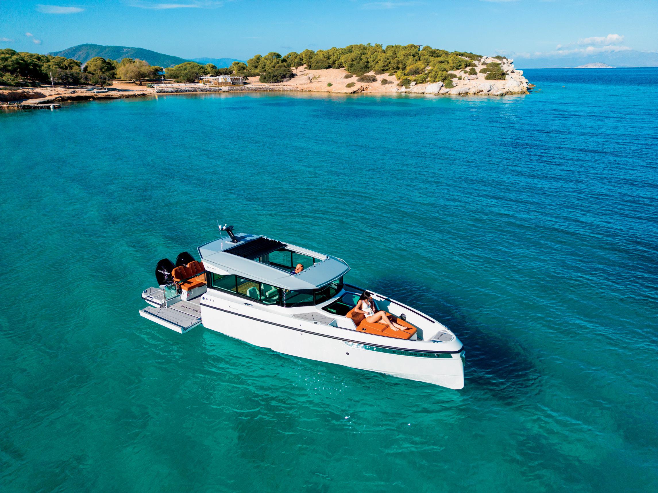 Install Humphree ACTIVE Stabilisation and everyone on board will feel as safe and steady as on dry land. This system lowers roll and slamming by up to 50%. And it feels like even more. Your family boat ride will be a whole new