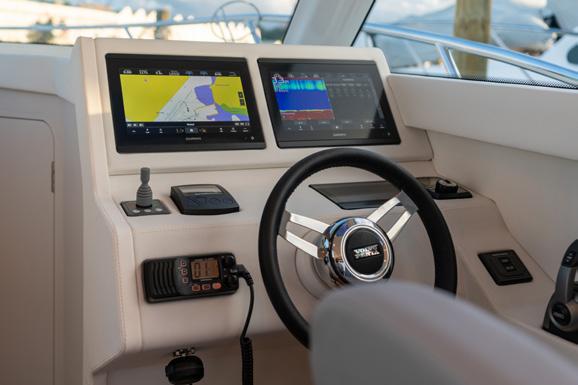While our boat was fitted with a single Garmin Echomap Ultra, there is enough space on the console for a pair of 12" MFD screens.