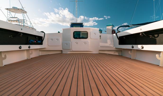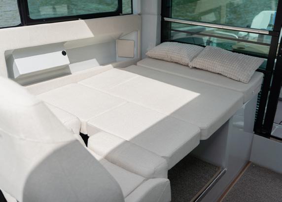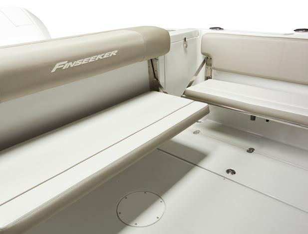 infill, you can transform the entire forward area into one big sunpad. However, if you are more interested in fishing than improving your tan, with the squabs removed, this transforms into an ideal casting platform. The soft squabs are replaced with brushed EVA teak flooring.