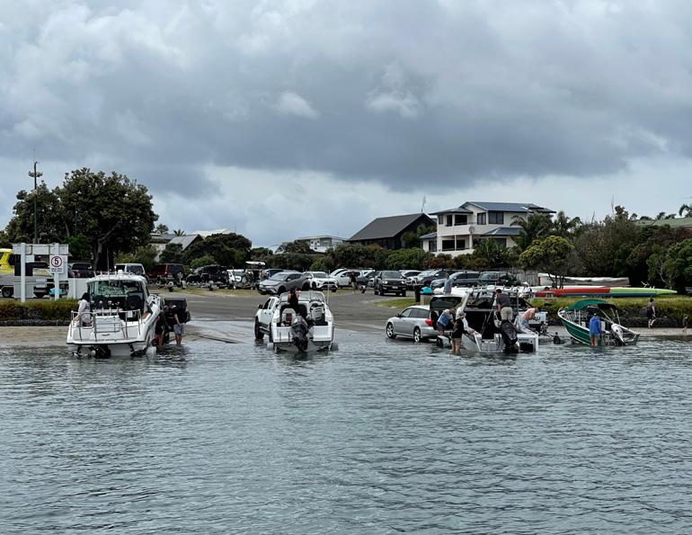 The late Shane Kelly, one of this country’s most respected yachting journalists, had a beach house at Omaha, and he told me how he would take a few beers in the afternoon and sit by the ramp to watch the mayhem. When the tide is out, the end of the concrete ramp drops off into nowhere, so you have to be extra careful not to drop your wheels off the end. However, the sand on either side is really hard, allowing for multi-launchings, so there is no waiting like I often see at Gulf Harbour.