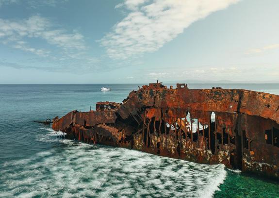Rising early, we shook off the night with a swim around the boat then resumed our travels towards Koumac and the scarcely visited northern isles. Passage making on the outside of the lagoon barrier reef, we came across a large shipwreck. The drone was launched to explore, and footage revealed the crumbling structure of the old vessel which ran aground long ago, stained red from decades of rust and bleeding iron. Maybe the person on navigation watch fell asleep? Turns out this was one of twin sister ships, both now in similar condition and both run by the same captain, in both instances, oops! Still, it provided a fascinating interlude to our trip up the coast.