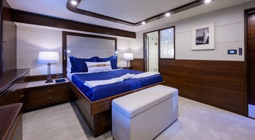 The master stateroom has a large island double and an oversized en-suite.